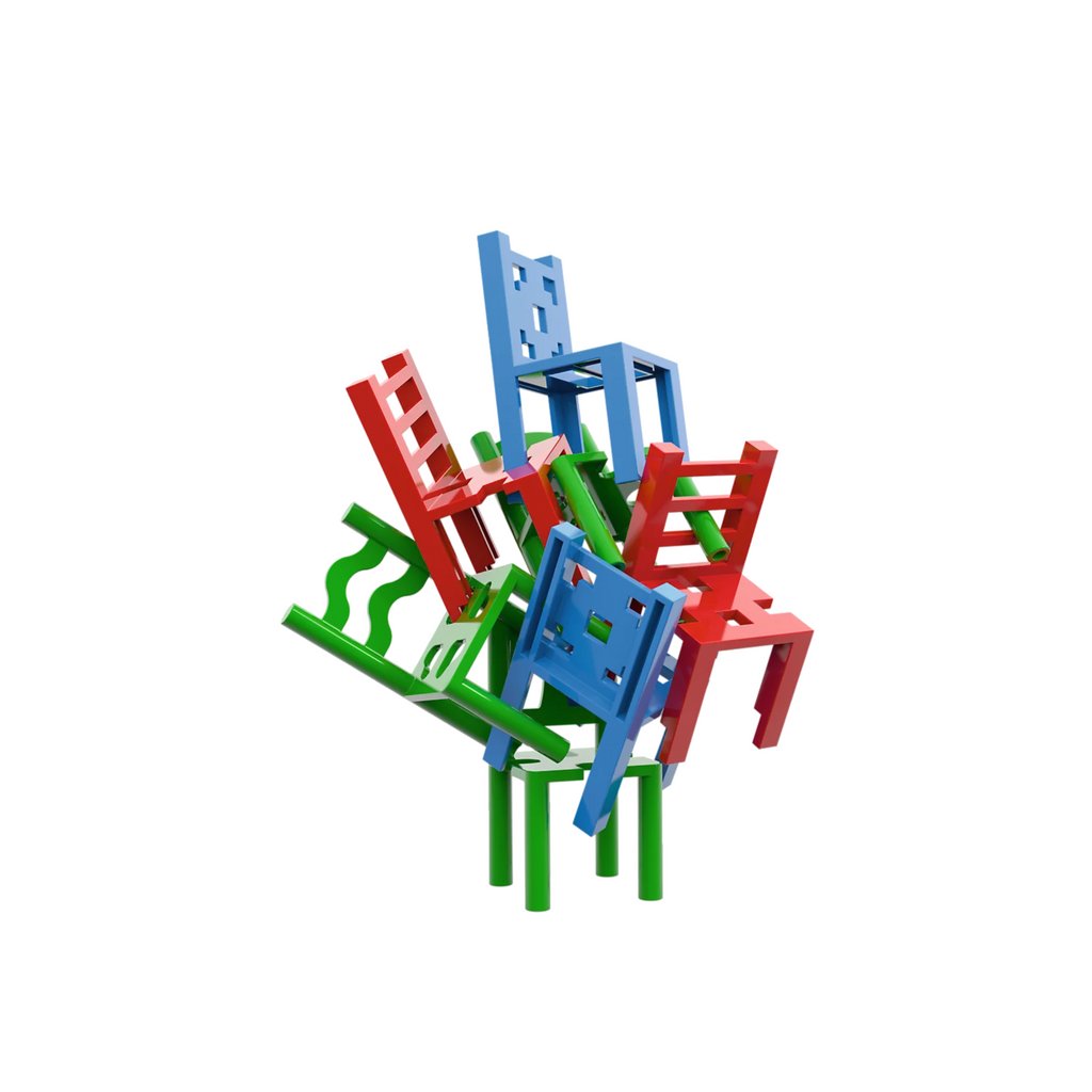 - 24 židliček: 8 zelených, 8 červených, 8 modrých