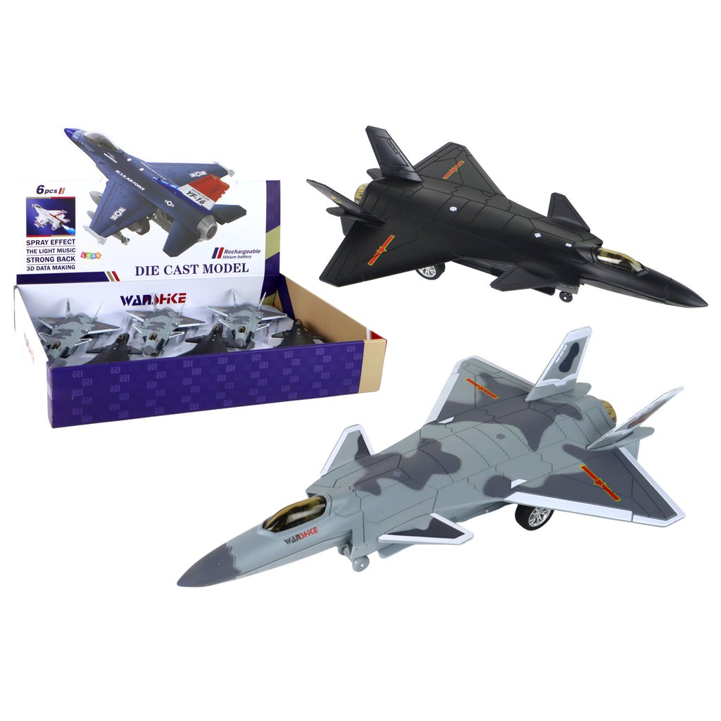 - Model letadla s frikčním pohonem, černý nebo šedý Tyto úžasné modely stíhacích letadel jsou k dispozici ve dvou elegantních barevných provedeních