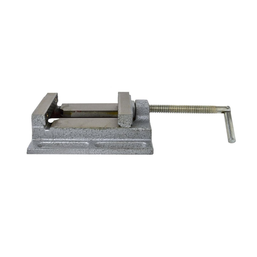 Vrtací svěrák s drážkovanou základnou umožňující snadnou montáž a polohování svěráku. Vyrobeno z litiny s odolnými ocelovými čelistmi s křížovými zářezy.