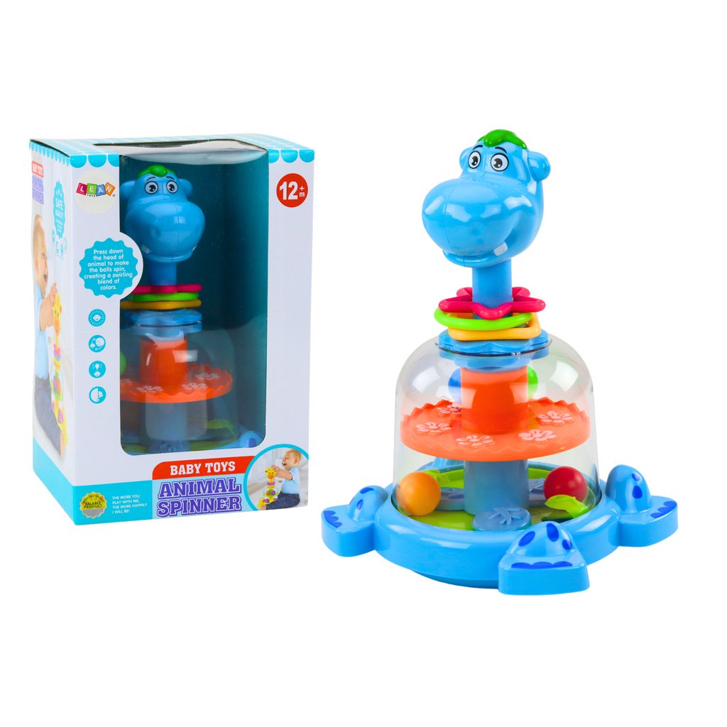 V bříšku hrocha se nachází pohyblivé kolo a čtyři barevné kuličky Po stisknutí hlavy hrošíka se kolo uvnitř začne otáčet a kuličky začnou skákat, čímž vytváří fascinující a dynamickou podívanou