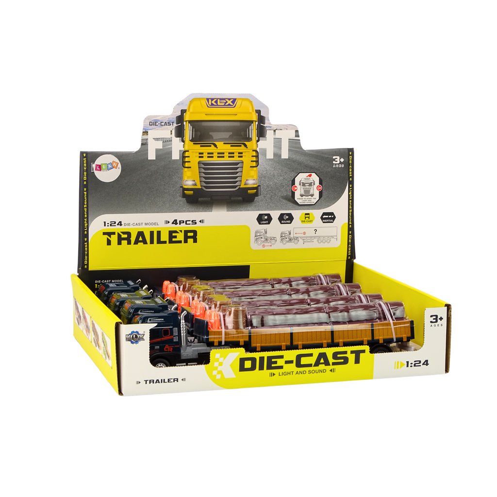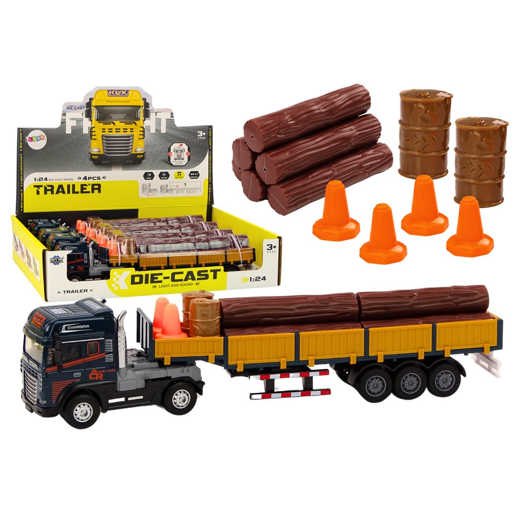Modrý kamion S Dřevem TIR Přívěs 1:24 Klády Zvuky Světla