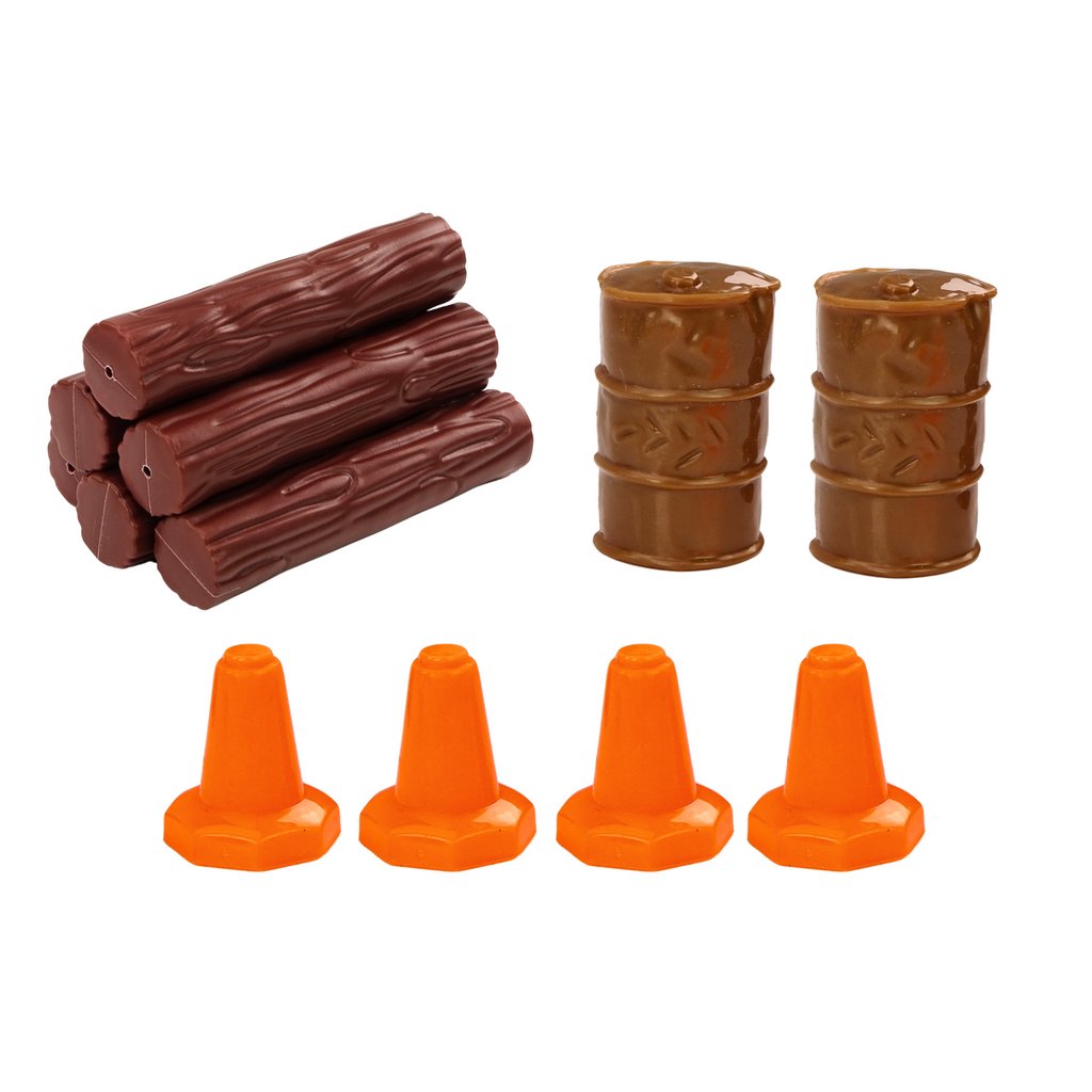 - Přívěs obsahuje čtyři silniční kužely, které lze použít pro simulaci prací na silnici nebo jiných situací vyžadujících zajištění prostoru