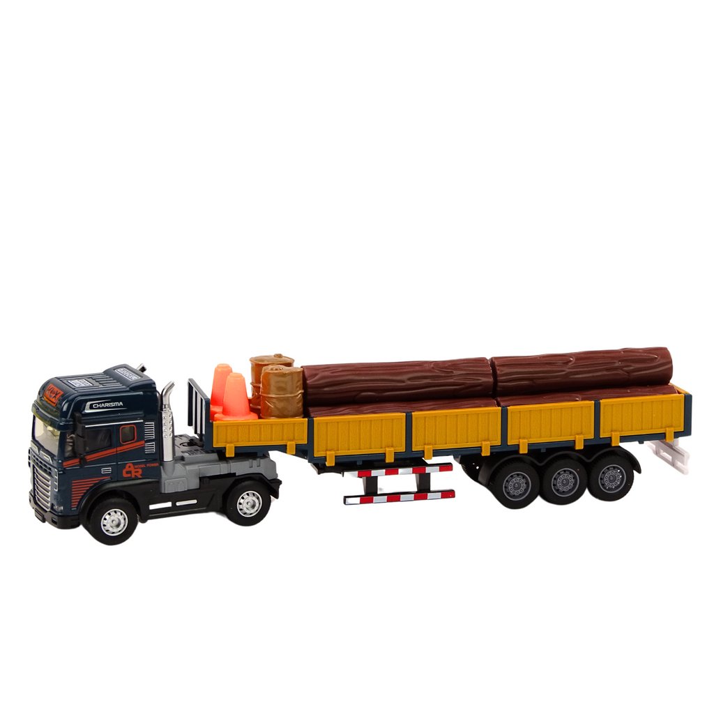 Modrý kamion s dřevem TIR přívěs 1:24 klády zvuky světla je realisticky zpracovaný model nákladního vozu s přívěsem v měřítku 1:24, který nabízí fascinující a interaktivní zábavu díky mnoha funkcím Kabina kamionu je modrá, což dodává vozu moderní a elegantní vzhled