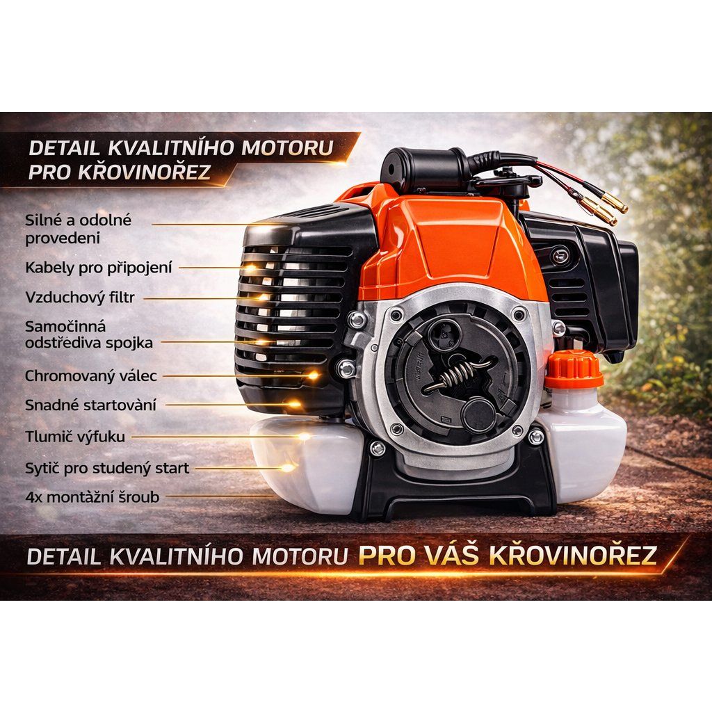 - 1× kompletní motor pro benzínový křovinořez / vyžínač