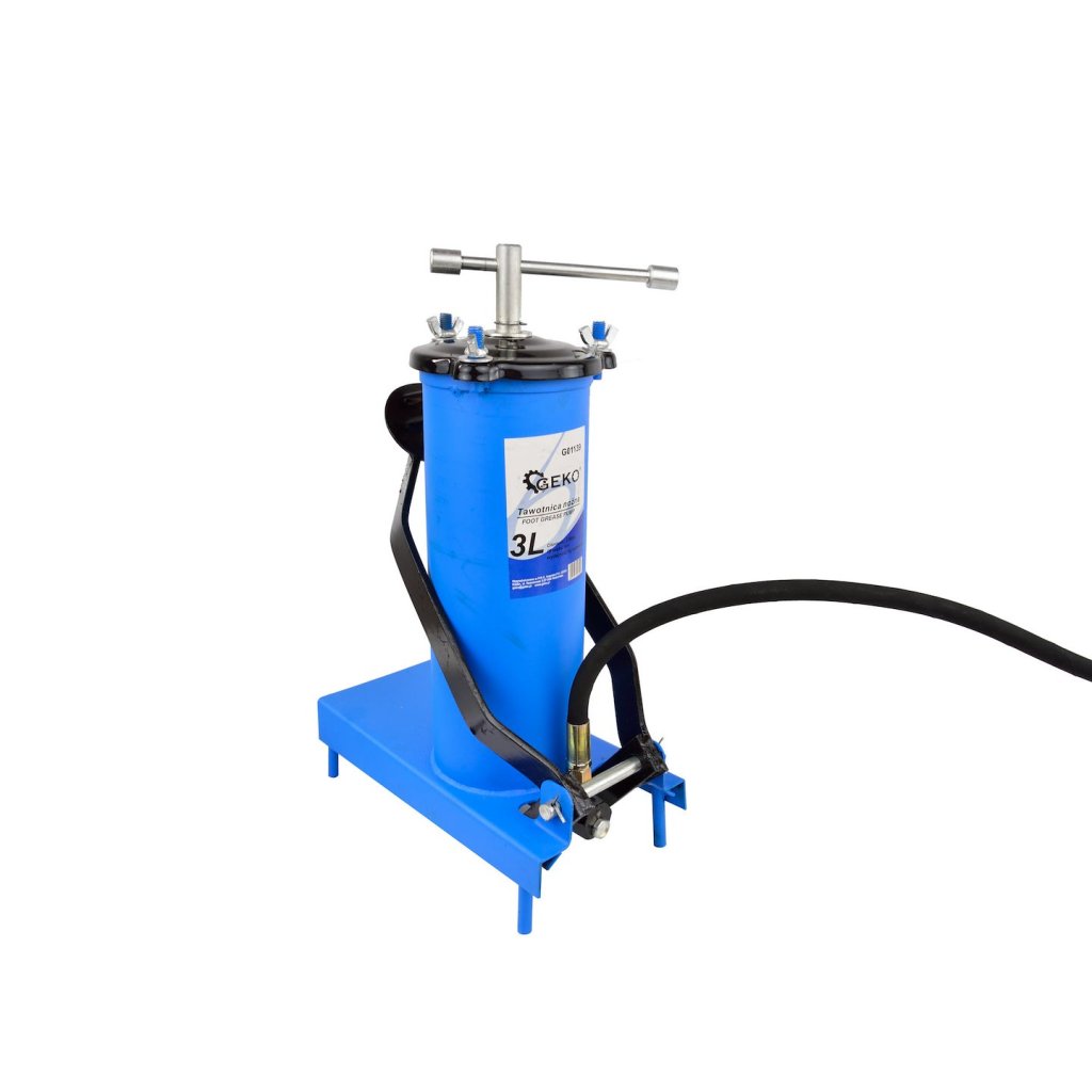 Nožní mazací zařízení o objemu 3 litry s hadicí o délce 4 metry. Mazací zařízení je ideální pro dílenské práce, kde je vyžadována vysoká přesnost, např. pro mazání strojů a zařízení vybavených mazacím systémem v podobě mazacích hlavic.