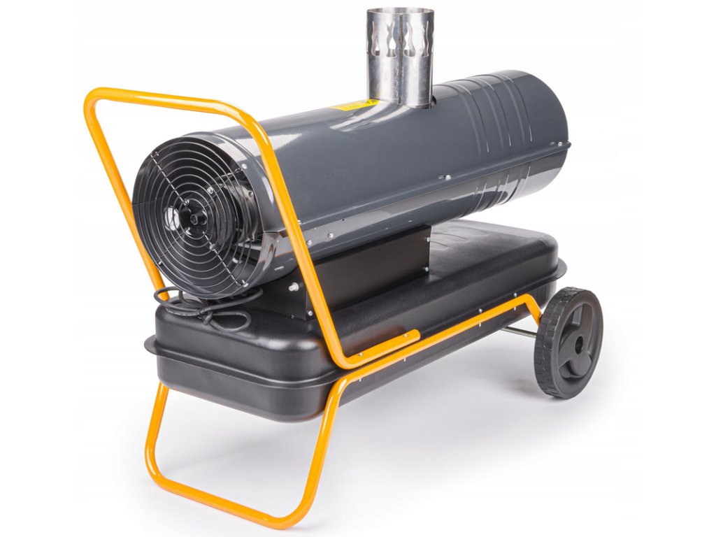 Profesionální naftový ohřívač 40 kW s komínem, LCD termostatem a velkou 56 l nádrží. Rychle vytopí haly, sklady, dílny či staveniště. Průtok vzduchu 920 m³/h a spotřeba paliva jen 2,5 l/h. Robustní nerezová komora, ochrana proti přehřátí a kola pro snadný transport.