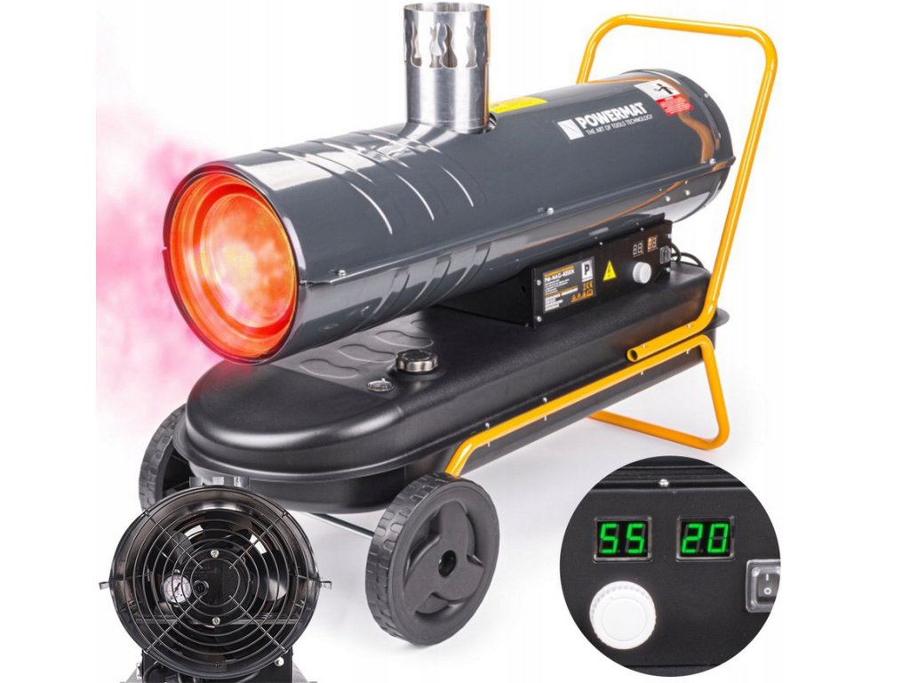 Profesionální Naftový ohřívač 40 kW s LCD termostatem a komínem je ideální řešení pro vytápění velkých prostor, jako jsou průmyslové haly, sklady, stavby nebo dílny. Díky vysokému výkonu, velkému průtoku vzduchu a kapacitní 56l nádrži poskytuje dlouhý a stabilní provoz. Robustní konstrukce s nerezovou spalovací komorou a bezpečnostními prvky, včetně ochrany proti přehřátí, zajišťuje spolehlivé a dlouhodobé používání.