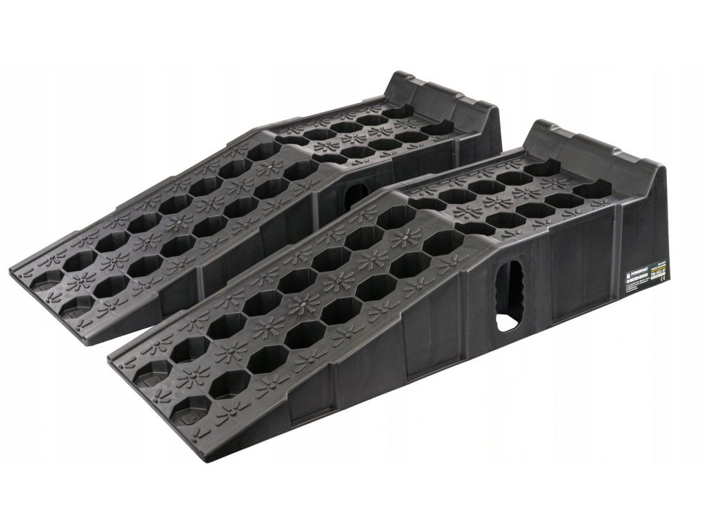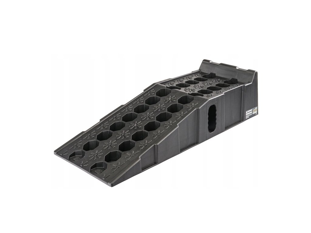 Pevná a lehká nájezdová sada pro dílny a servisy. Konstrukce z HDPE je odolná vůči povětrnosti a korozi, protiskluzný povrch a 6 gumových podložek na spodku každé rampy zajišťují stabilitu. Vysoký doraz chrání před přejetím. Nosnost 8 t za pár (≈ 4 t/rampa) je ideální pro většinu osobních a lehkých užitkových vozidel. Součástí je voděodolný přepravní obal pro snadné skladování.