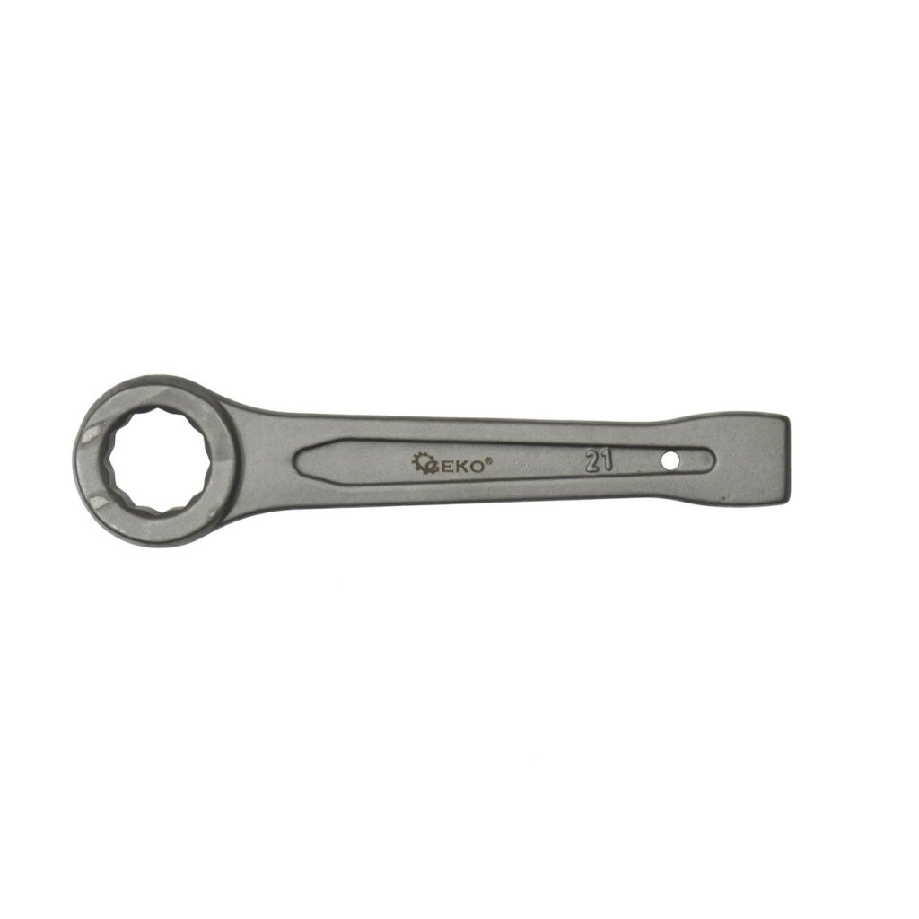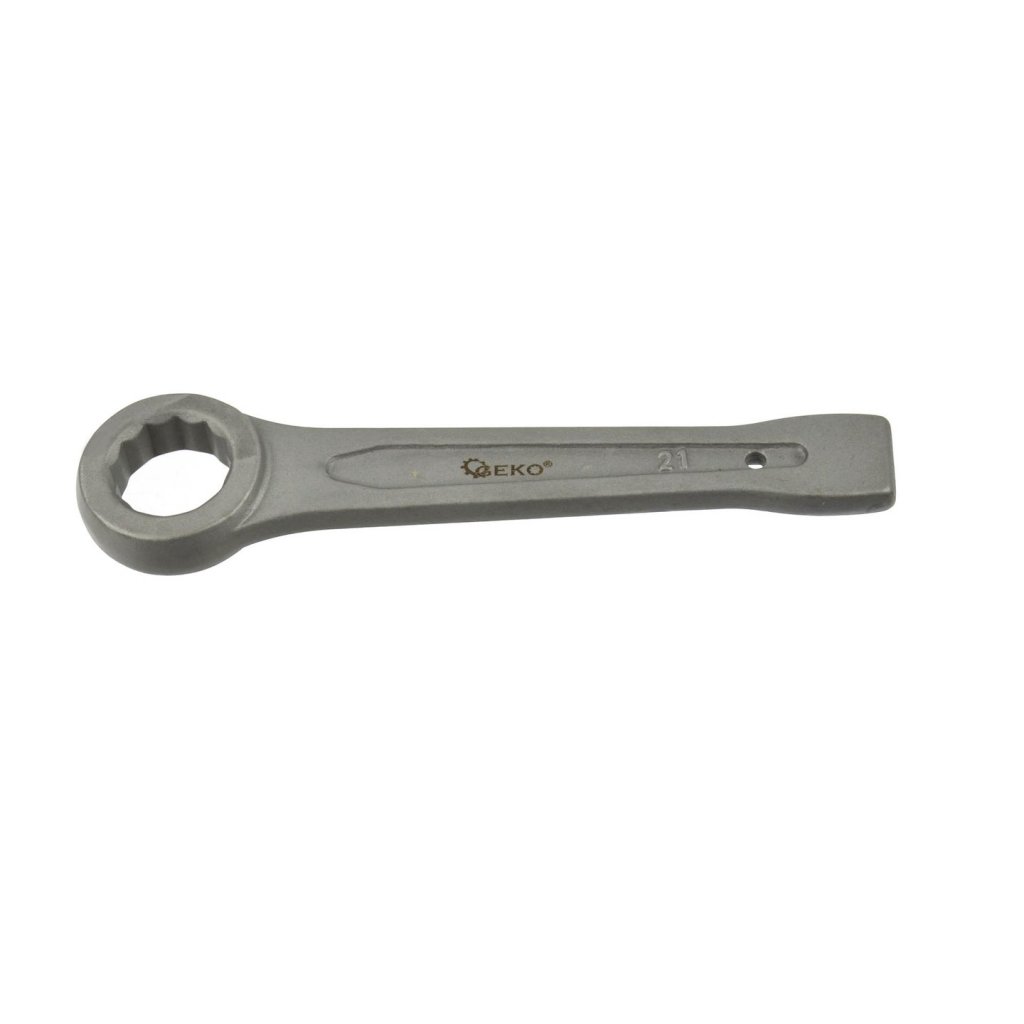 Očkový klíč na zatloukání určený k odšroubování pevně utažených nebo zaseknutých šroubů povýkoní úderů kladivem na konec rukojeti klíče.