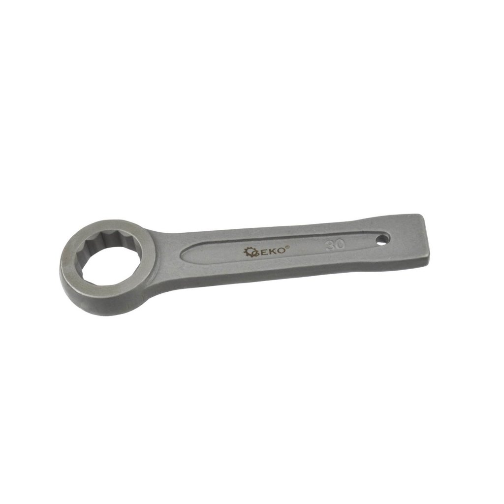 Očkový klíč na zatloukání určený k odšroubování pevně utažených nebo zaseknutých šroubů povýkoní úderů kladivem na konec rukojeti klíče.