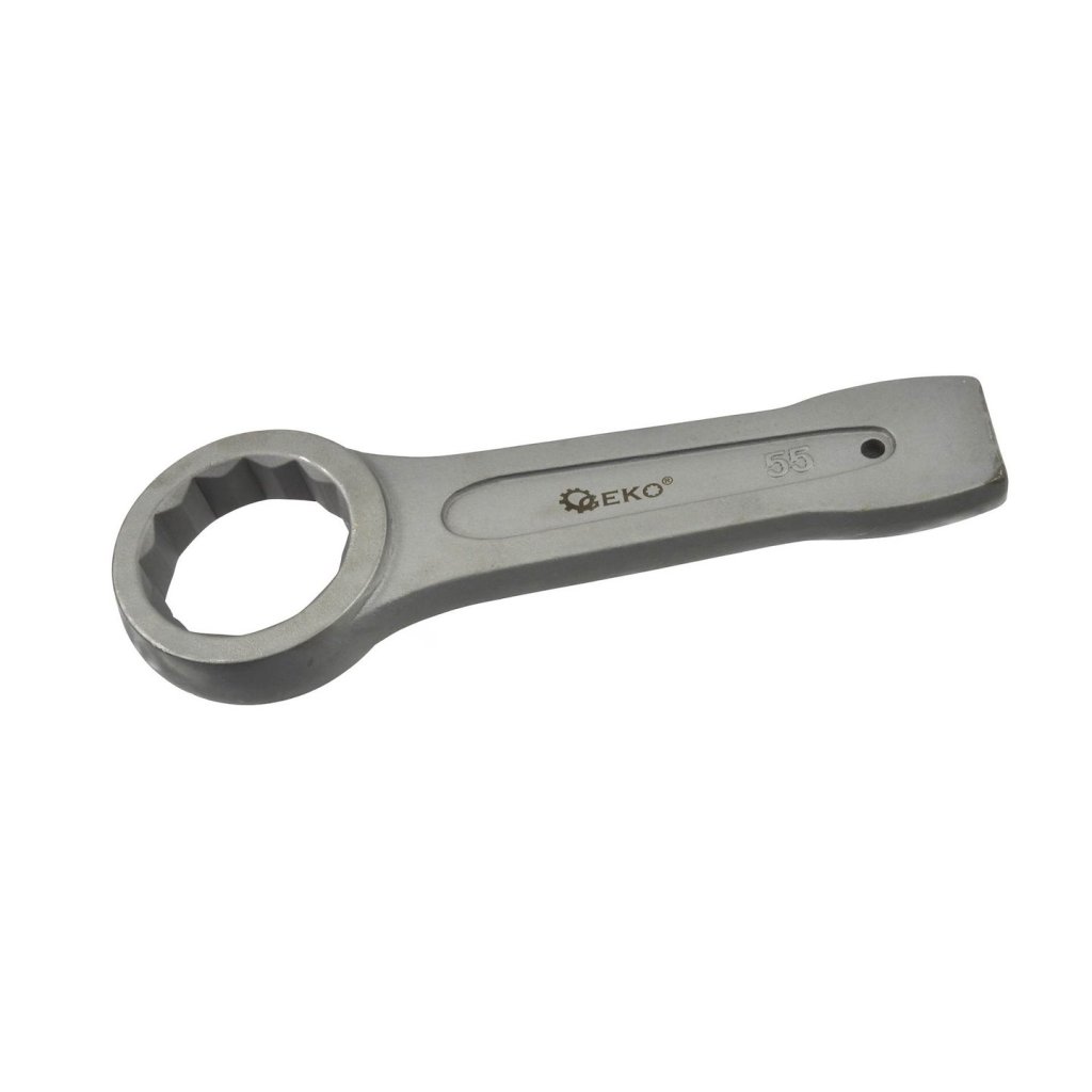 Očkový klíč na zatloukání určený k odšroubování pevně utažených nebo zaseknutých šroubů povýkoní úderů kladivem na konec rukojeti klíče.