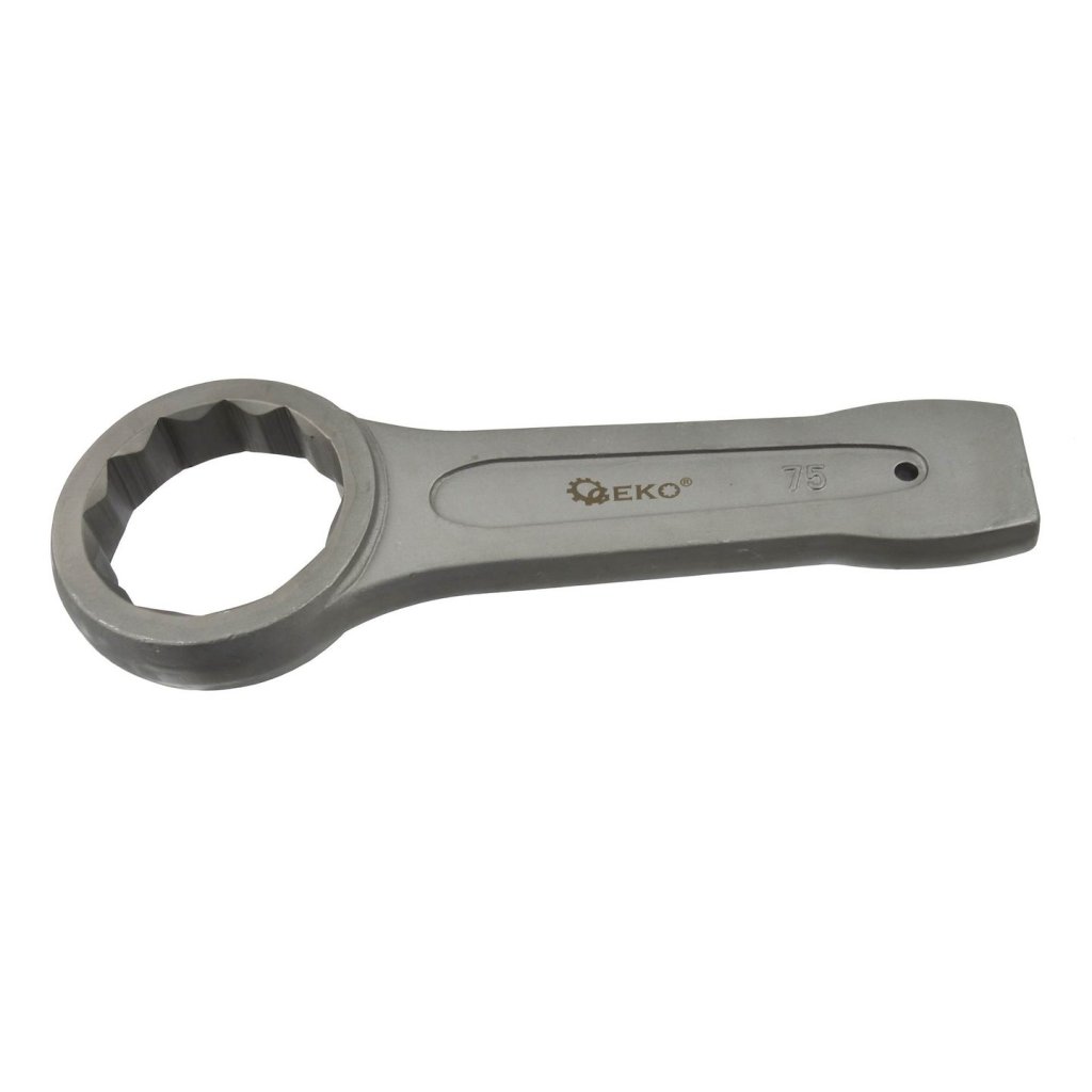 Očkový klíč na zatloukání určený k odšroubování pevně utažených nebo zaseknutých šroubů povýkoní úderů kladivem na konec rukojeti klíče.
