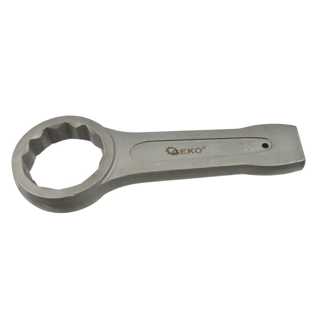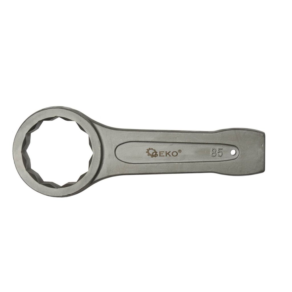 Očkový klíč na zatloukání určený k odšroubování pevně utažených nebo zaseknutých šroubů povýkoní úderů kladivem na konec rukojeti klíče.