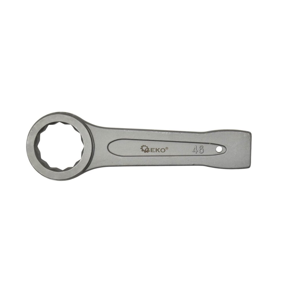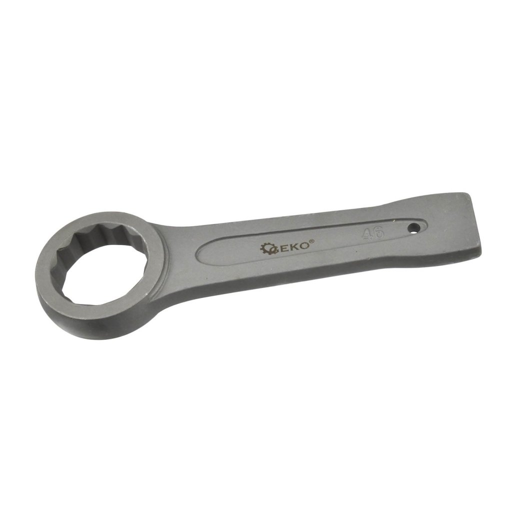 Očkový klíč na zatloukání určený k odšroubování pevně utažených nebo zaseknutých šroubů povýkoní úderů kladivem na konec rukojeti klíče.