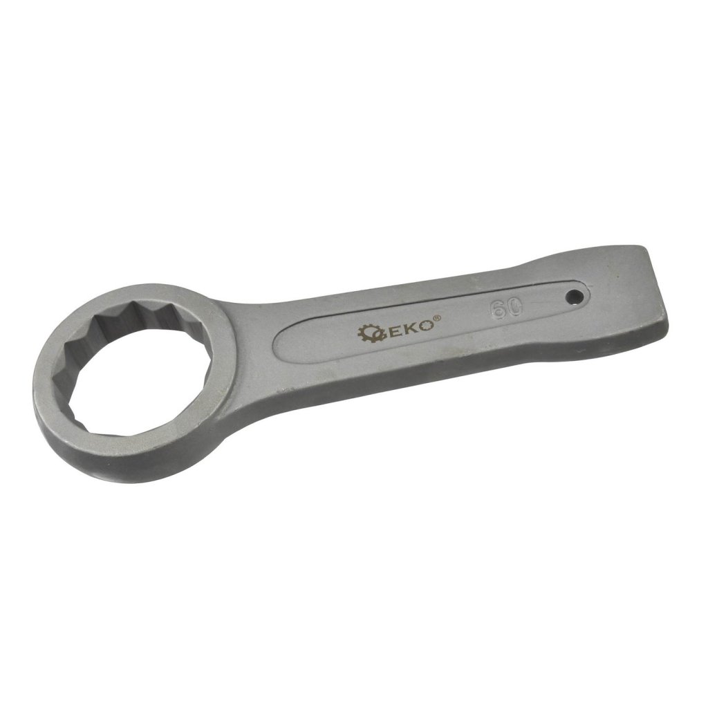 Očkový klíč na zatloukání určený k odšroubování pevně utažených nebo zaseknutých šroubů povýkoní úderů kladivem na konec rukojeti klíče.