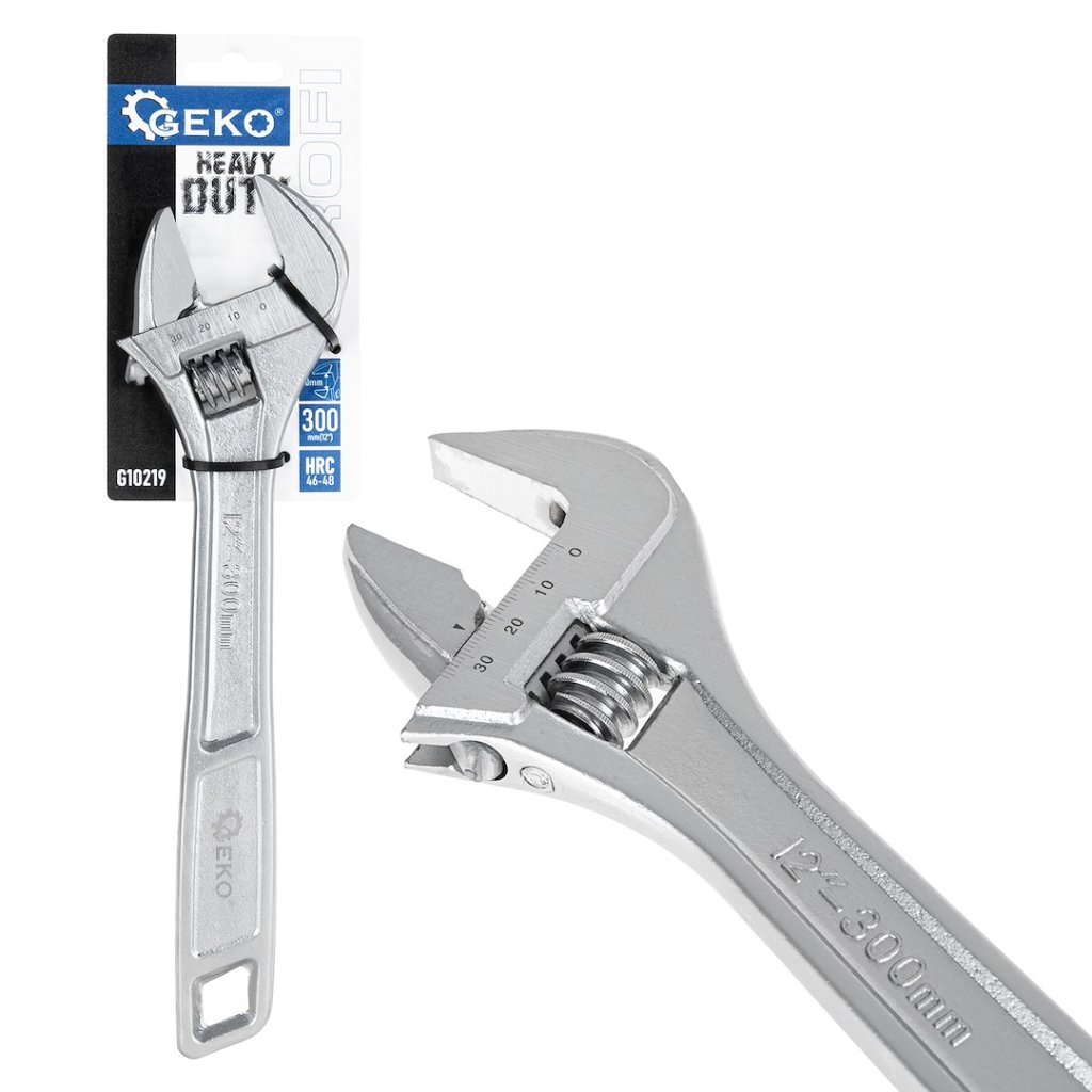 Nastavitelný klíč GEKO PROFI HEAVY DUTY je spolehlivý nástroj, ideální jak pro profesionální použití, tak pro domácí dílnu. Je vyroben z vysoce kvalitní nástrojové oceli CRV, která zajišťuje výjimečnou odolnost, odolnost proti opotřebení a dlouhou životnost. Díky tvrdosti 46-48 HRC je klíč odolný proti deformaci a poškození i při intenzivním používání.