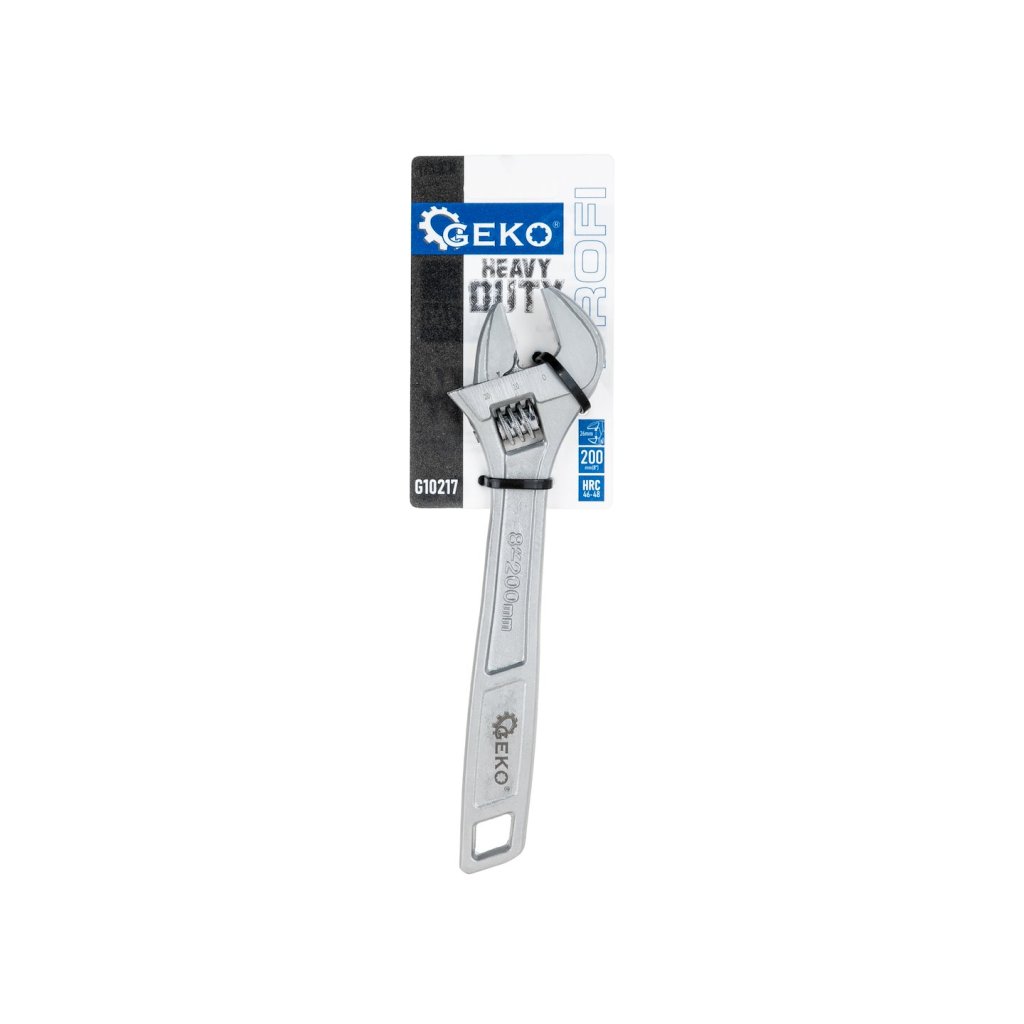 Nastavitelný klíč GEKO PROFI HEAVY DUTY je spolehlivým nástrojem, který je ideální jak pro profesionální použití, tak pro domácí dílnu. Je vyroben z vysoce kvalitní nástrojové oceli CRV, která zajišťuje výjimečnou odolnost proti opotřebení a dlouhou životnost. Díky tvrdosti 46-48 HRC je klíč odolný proti deformaci a poškození, a to i při intenzivním používání.