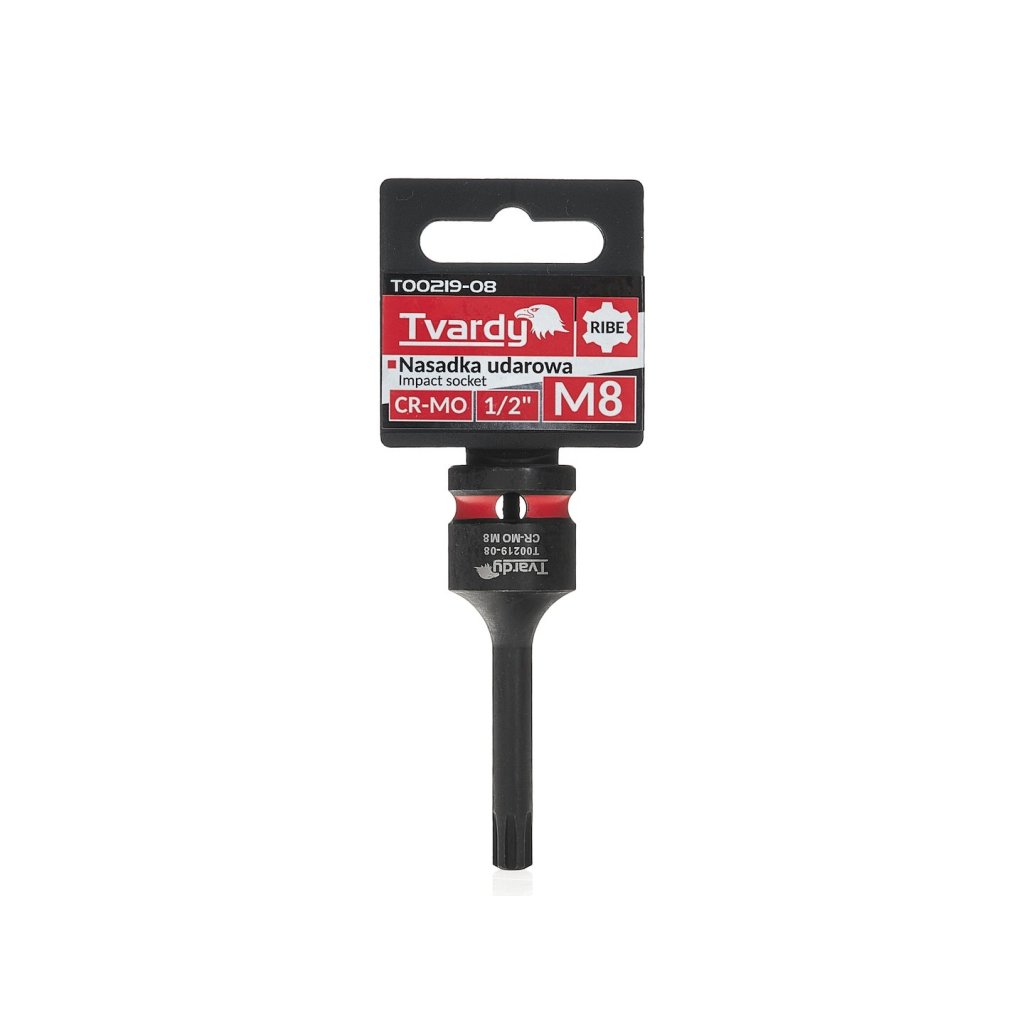 Profesionální nástrčná hlavice RIBE značky Tvardy, určená pro intenzivní práci s rázovými klíči. Nezastupitelná v autoservisech, průmyslu a při montáži konstrukcí, kde se používají spoje se zásuvkou typu RIBE.
