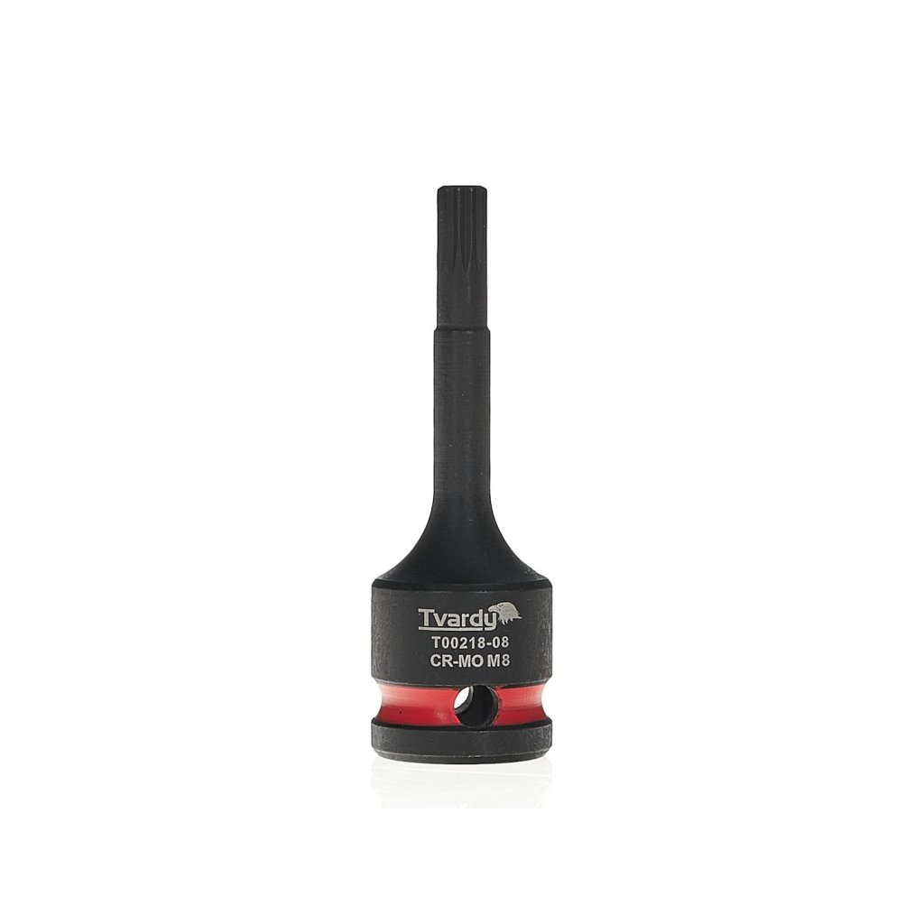 Profesionální nástrčná hlavice SPLINE značky Tvardy, určená pro intenzivní práci s rázovými klíči. Nezastupitelná v autoservisech, průmyslu a při montáži konstrukcí, kde se používají spoje se zásuvkou typu SPLINE.