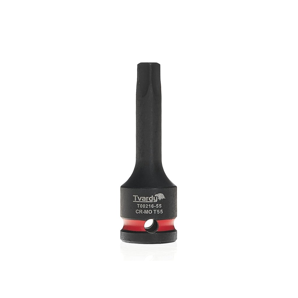 Profesionální nástrčná hlavice TORX značky Tvardy, určená pro intenzivní práci s rázovými klíči. Nezastupitelná v autoservisech, průmyslu a při montáži konstrukcí, kde se používají spoje se zásuvkou typu TORX.