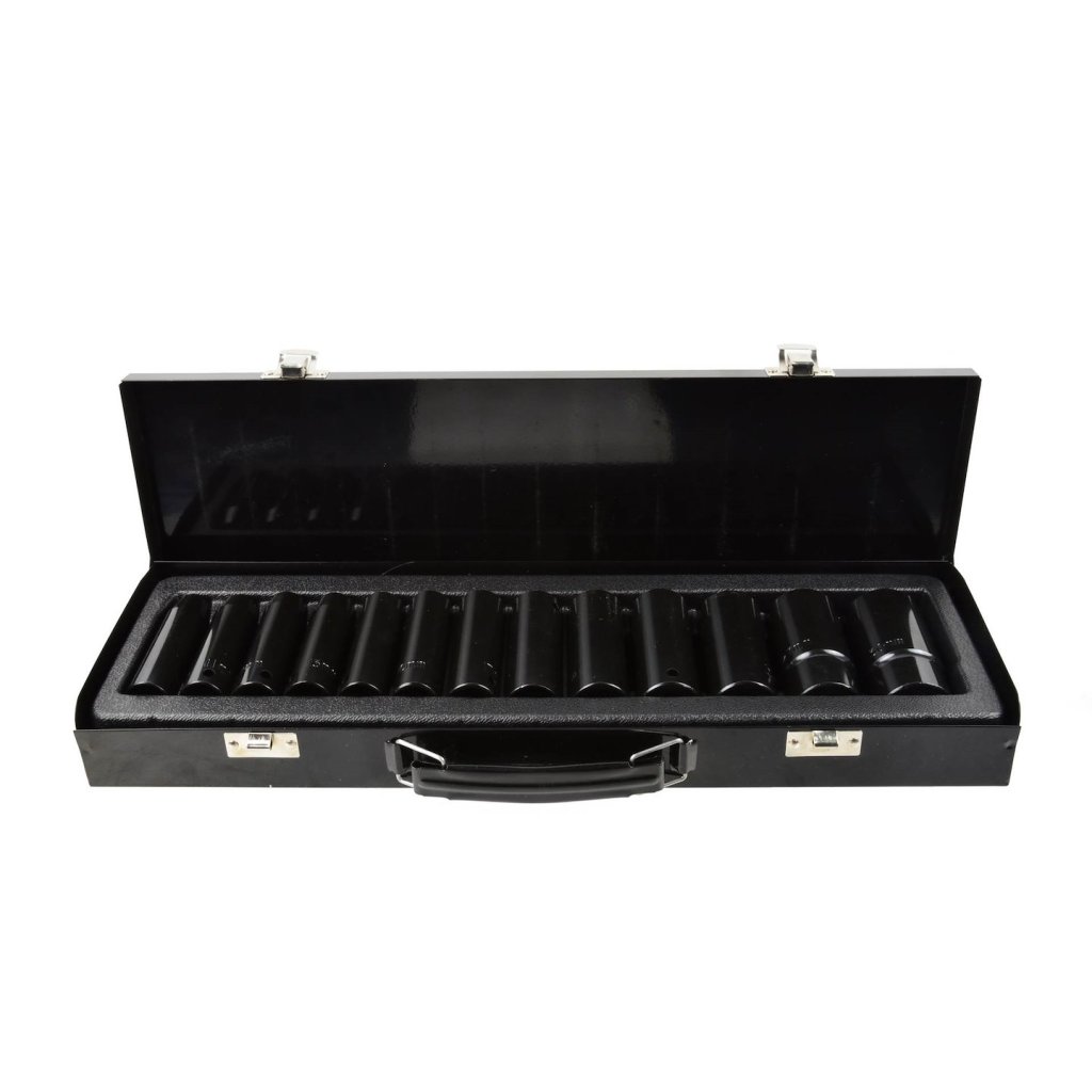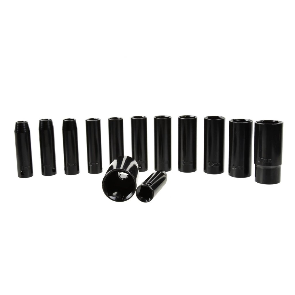 Sada 13 šestihranných nástrčných klíčů 1/2" 10-30 mm. Klíče jsou vyrobeny z vysoce kvalitní chrom-molybdenové legované oceli. Určené pro práci s nárazovými klíči s vysokým točivým momentem. Skvěle se hodí do profesionální autoservisu.