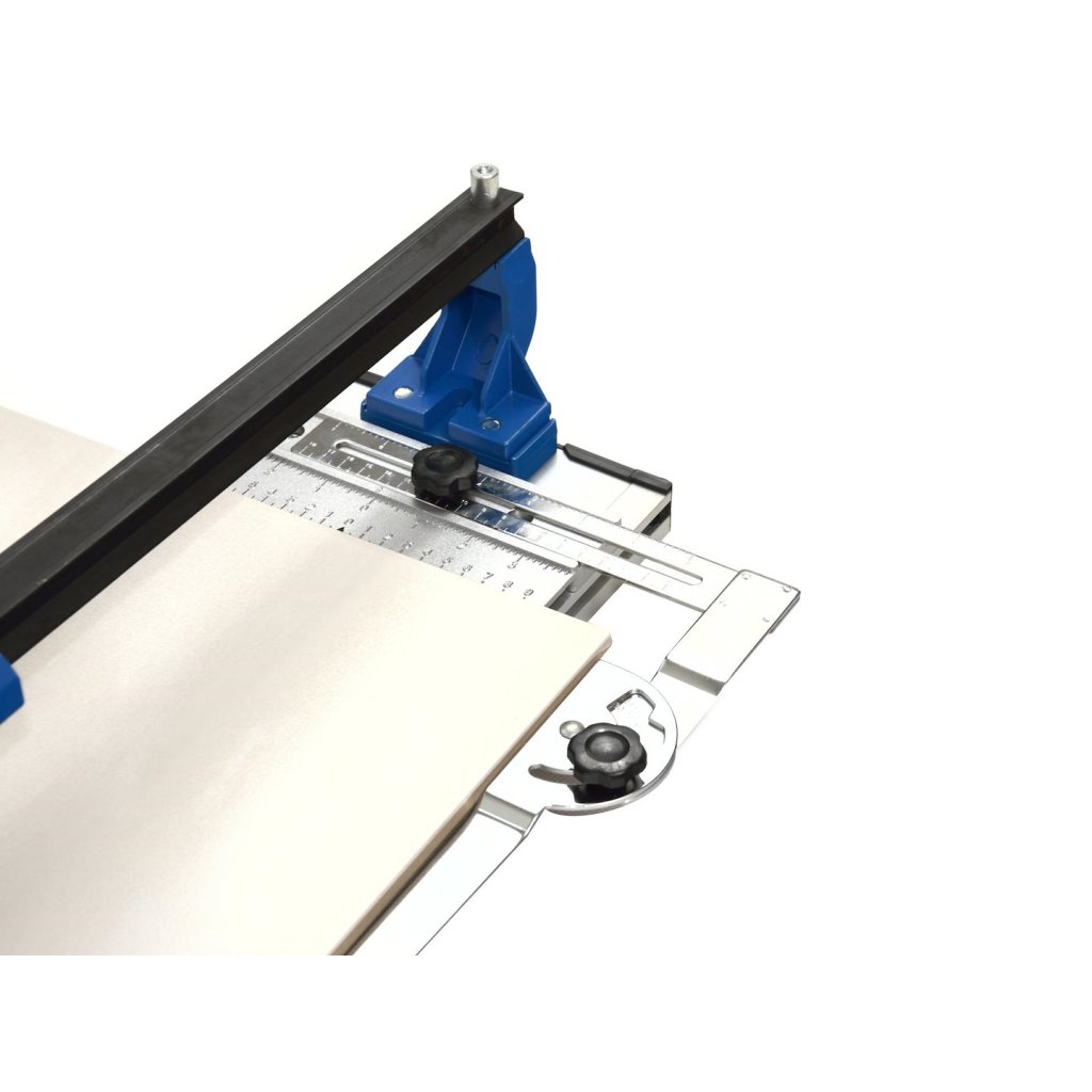 Profesionální nástroj na řezání dlaždic s délkou pracovní plochy 800 mm. Odolné ostří z karbidu wolframu potažené vrstvou titanu zajišťuje rychlé řezání. Stabilní kolejnice s řezacím mechanismem na kuličkových ložiscích zajišťuje přesné řezání dlaždic o tloušťce až 16 mm. Kovové pravítko umožňuje přesné měření řezu a nastavení úhlu řezu v rozmezí od 0 do 60°. Hliníková základna s gumovými nožičkami zajišťuje stabilitu zařízení během práce.