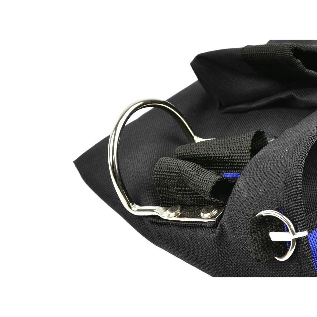 Nástrojová taška vyrobená z odolného plastu odolného proti oděru. Má 5 kapes, které umožňují pohodlné přenášení různých druhů nástrojů a příslušenství, jako jsou šrouby, hřebíky, šrouby atd. Taška je navíc vybavena integrovaným držákem na kladivo.