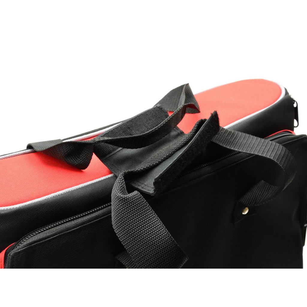 - Dvě boční komory vybavené držáky na šroubováky a klíče s plochým a okem a menšími a většími kapsami na nářadí a příslušenství