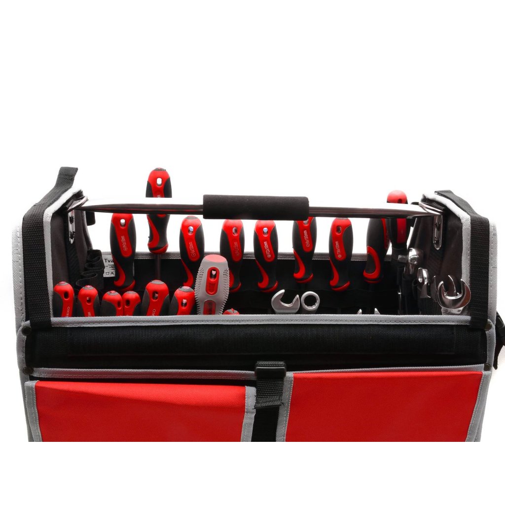 - Velký prostor pro nářadí, uvnitř tašky 47 kapes a držáků na nářadí, klíče a šroubováky