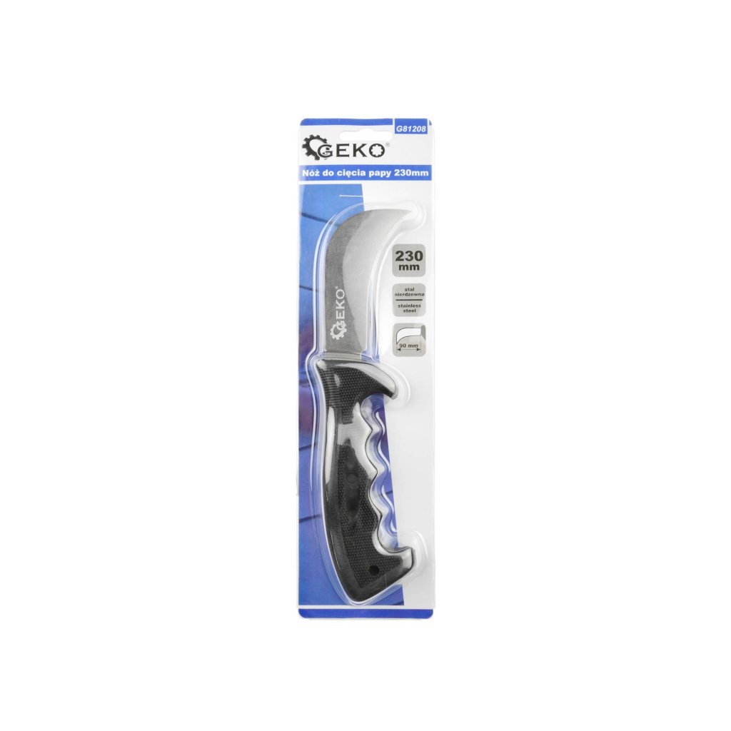 Nůž na řezání lepenky a podlahových krytin. Vyrobeno z nerezové oceli s označením 2Cr13. Speciální srpovitá čepel umožňuje efektivní provádění prací, jako je řezání lepenky nebo podlahových krytin. Jistý úchop nástroje zajišťuje profilovaná rukojeť vyrobená z odolného a odolného plastu.