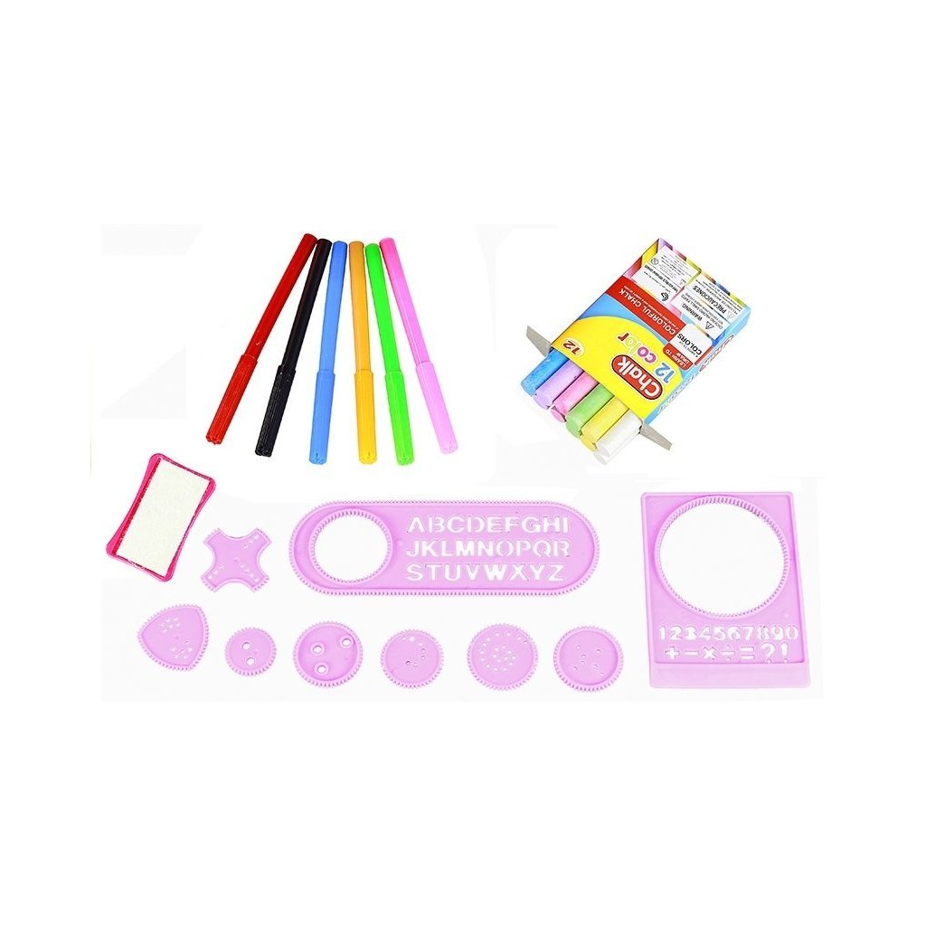 Oboustranná Tabule na Křídu a Fixy 2v1 se Šablonami