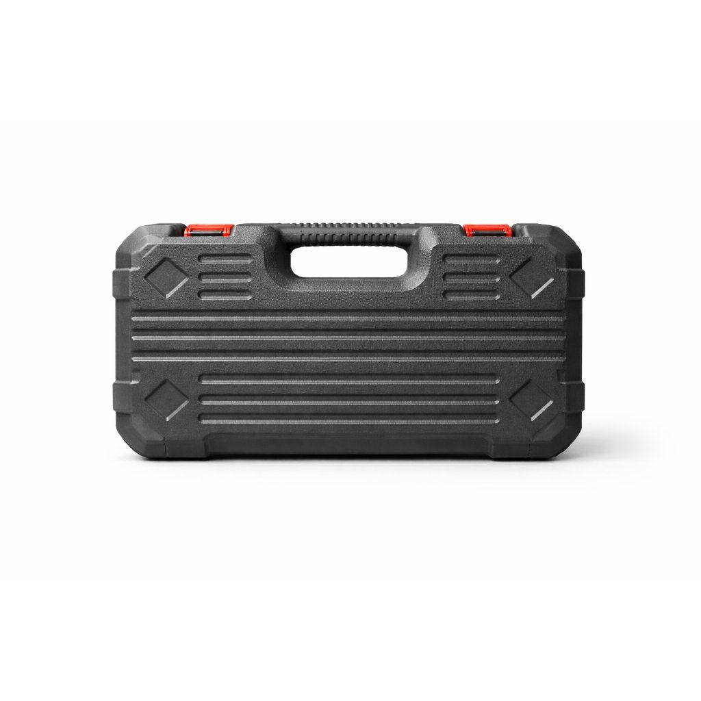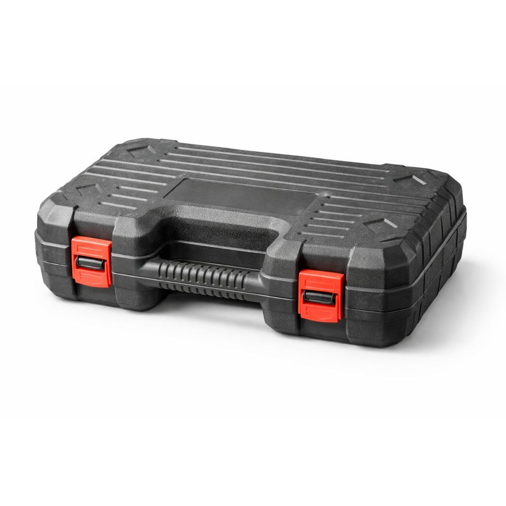 Ergonomické madlo padne dobře do ruky a usnadní přenášení i plně naloženého kufru. Kompaktní rozměry znamenají snadné skladování v regálu, dílně i kufru auta.