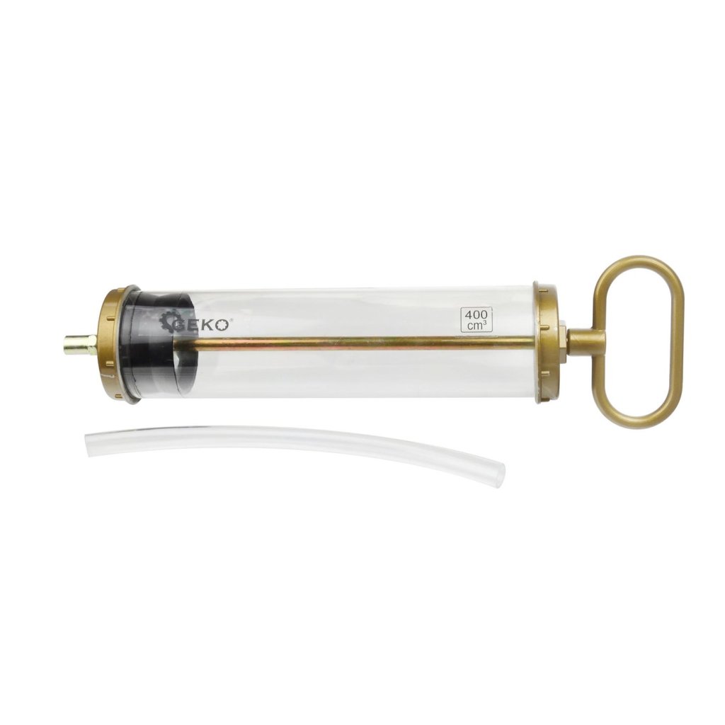 Ruční injekční stříkačka na olej o objemu 400 ml. Slouží k vstřikování nebo odsávání oleje z těžko přístupných míst, jako jsou převodovky, hnací mosty atd.