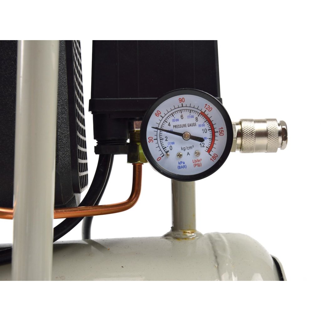 Olejový kompresor s výkonným motorem o výkonu 1 HP a objemem nádrže 8 litrů. Vybaven reduktorem tlaku, který umožňuje nastavení hodnoty tlaku v nádrži.