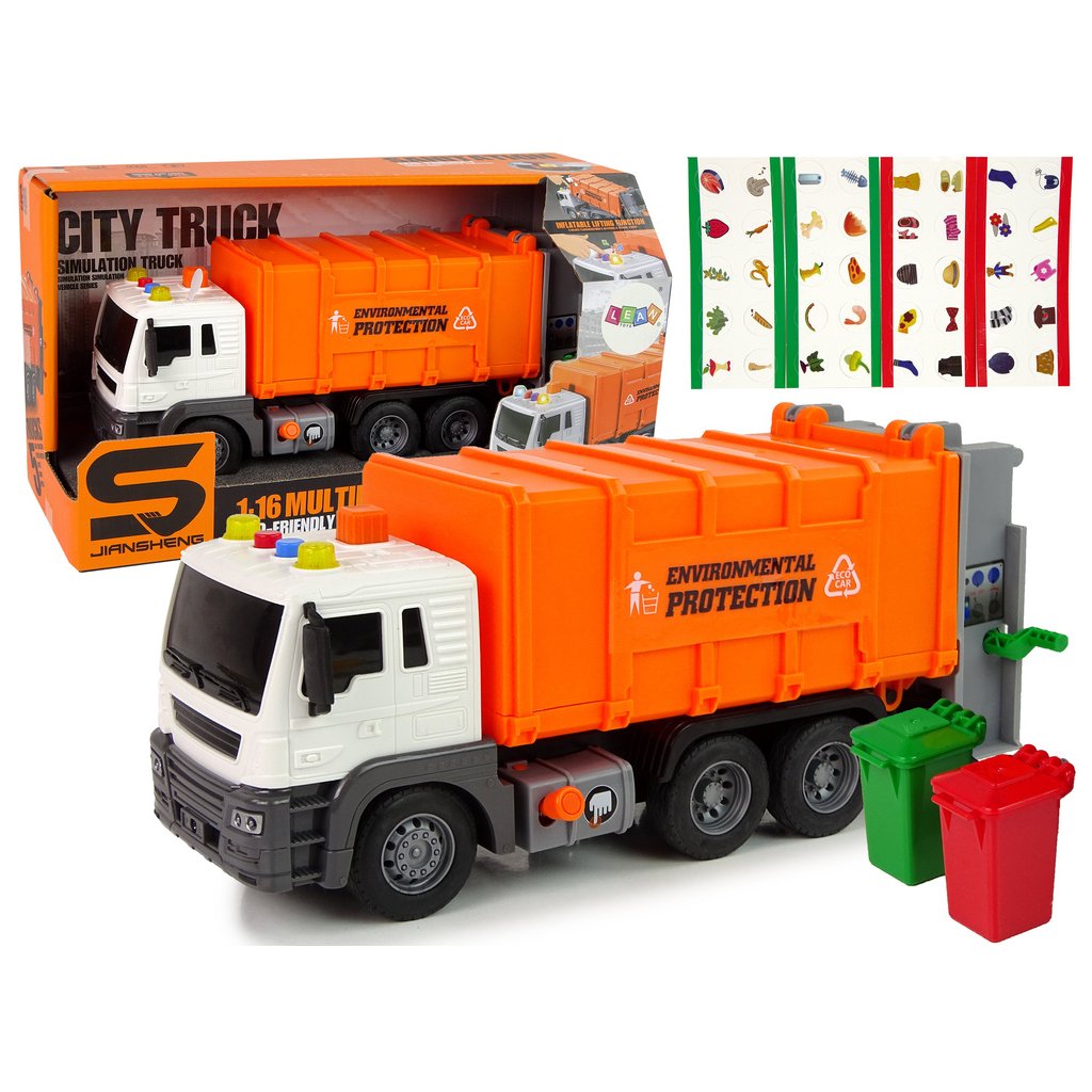 - Udělejte hraní ještě více vzrušujícím a vzdělávacím s naším oranžovým odpadkovým vozem, který nejen že vypadá autenticky, ale nabízí i realistické zvukové efekty