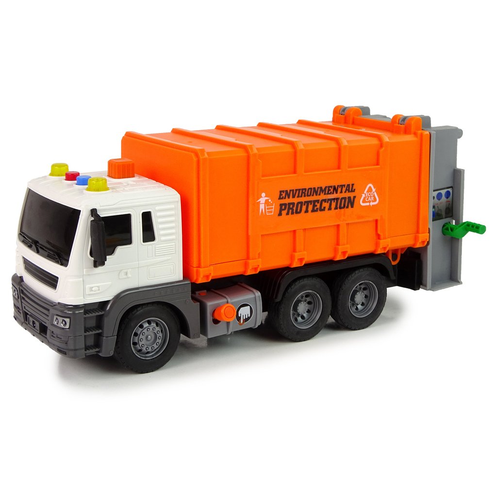 Popelář s frikčním pohonem a zvukovými efekty, oranžový 1:16, třídění Popelářské auto je vozidlo, které děti často vídají na silnicích a které vzbuzuje jejich zájem