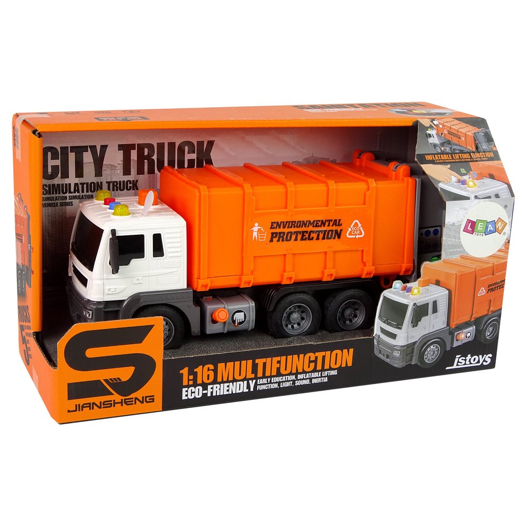 Popelář s frikčním pohonem a zvukovými efekty, oranžový, 1:16, třídění Popelářské auto je vozidlo, které děti často vídají na silnicích a které vzbuzuje jejich zájem.