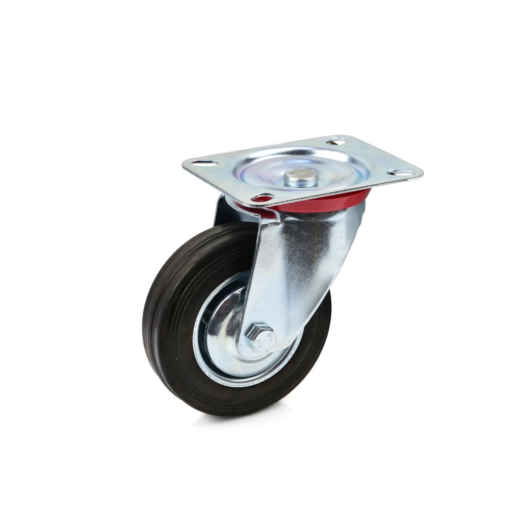 Otočné kolo o průměru 100 mm. Jádro kola (ráfek) i kryt jsou vyrobeny z oceli, zatímco pneumatika je vyrobena z vysoce kvalitní gumy, která zlepšuje přilnavost kola a zabraňuje poškrábání podlahy.