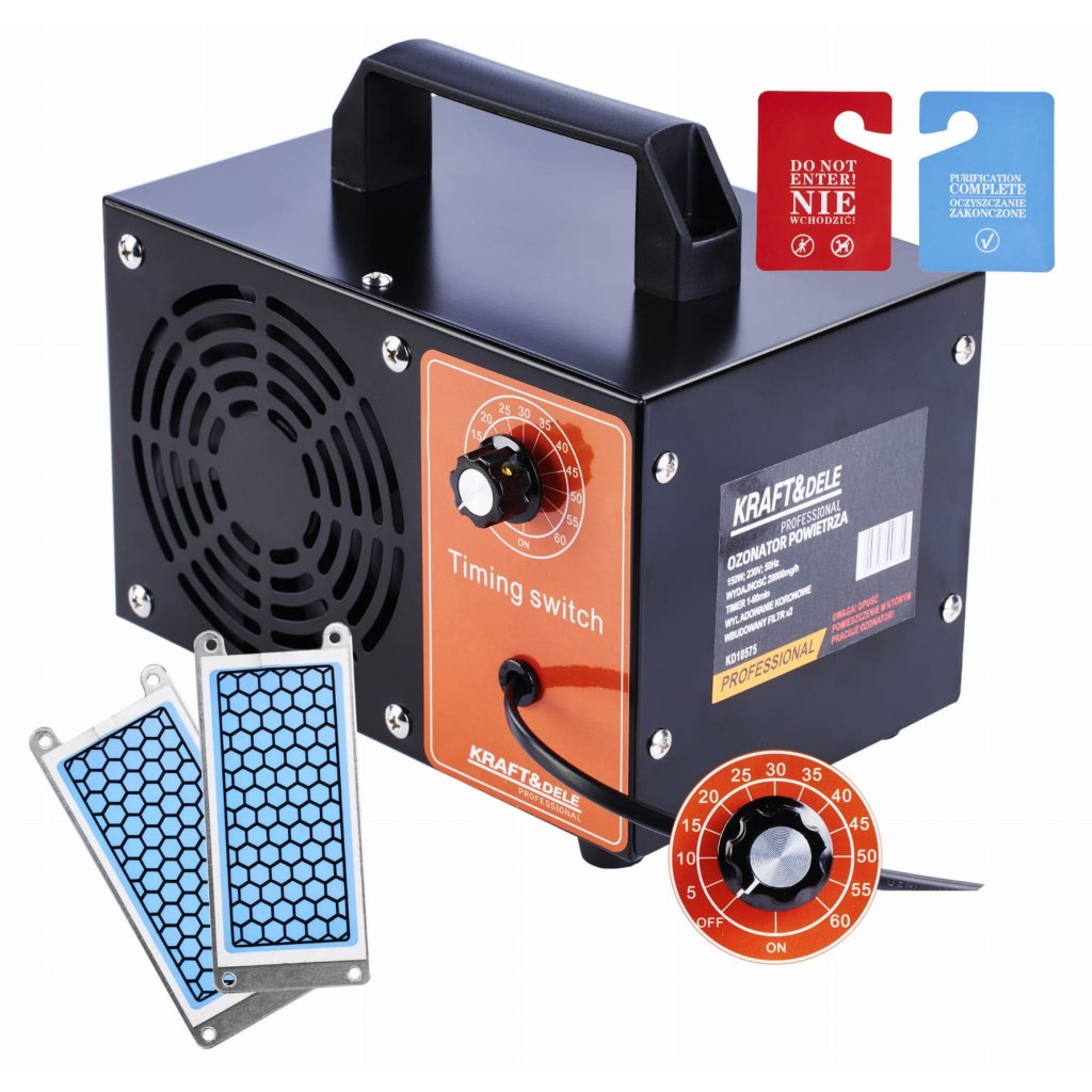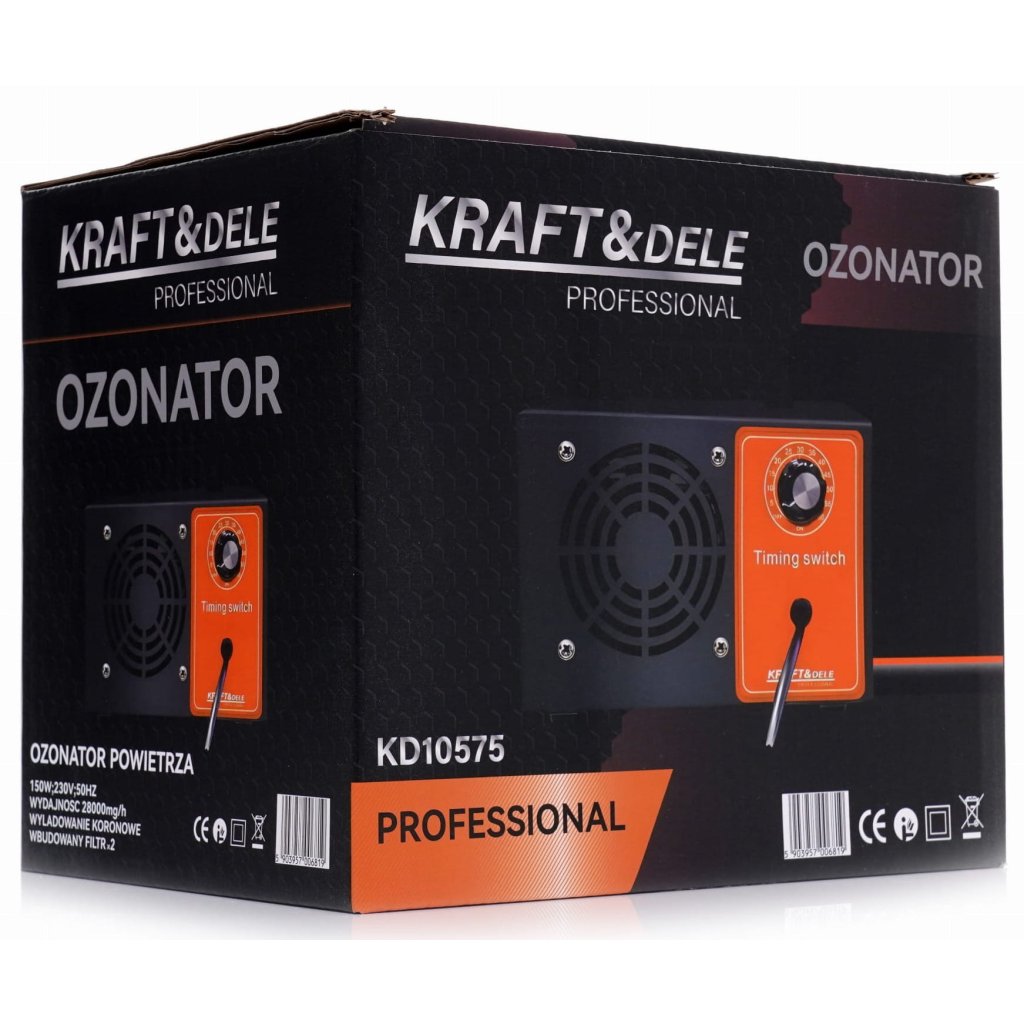 - TECHNICZNE PRODUKTU Marka: KRAFT&DELE Model: KD10575 Typ narzędzia: ozonator Moc: 150 W Wydajność: 28000mg/h Timer: tak w zakresie 1-60min Filtry: wbudowane 4 sztuki