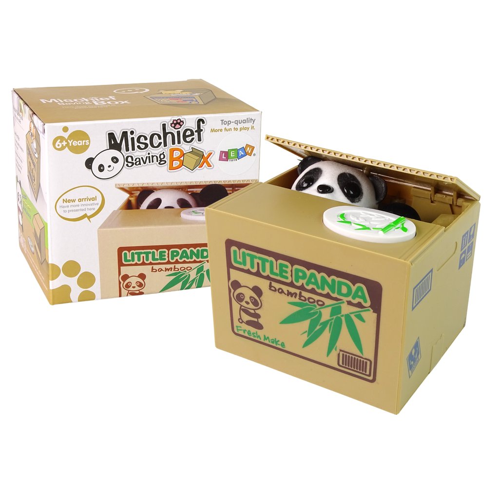 Naučte své děti šetřit peníze zábavnou formou s touto roztomilou panda pokladničkou. Každé dítě si zamiluje sbírání svých úspor a tato pokladnička je ještě více povzbudí k tomu, aby si penízky odkládaly. Stačí stisknout tlačítko na boudičce a panda zvedne víčko a svou tlapkou vtáhne penízky dovnitř.