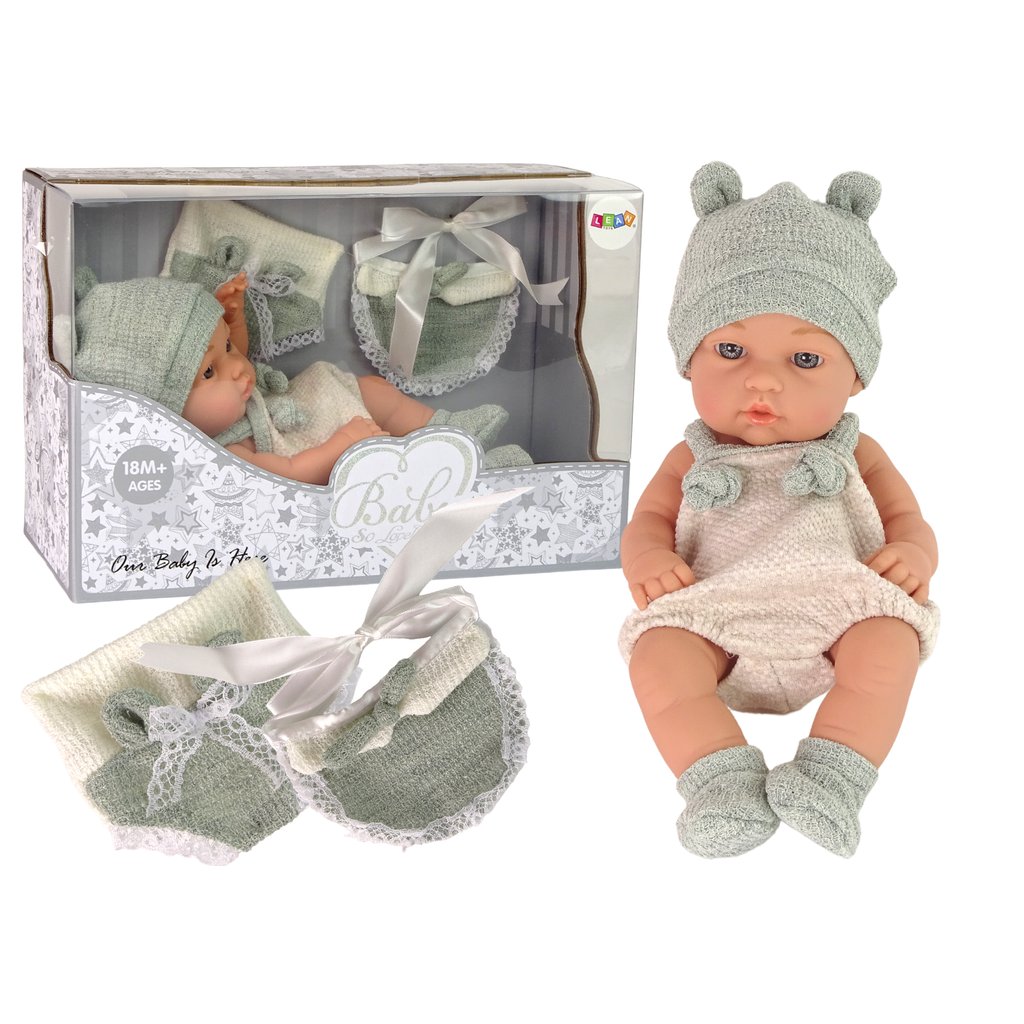 Panenka je oblečena do pleteného oblečku laděného do světle zelené, s krajkovými prvky. Součástí jsou také sladké čepička a ponožky. Všechny částečky oblečení jsou plně odnímatelné, což umožňuje výměnu šatníku. Panenka má pohyblivé ruce, nohy a hlavou – snadno ji umístíte do libovolné pozice v sedě nebo vleže.