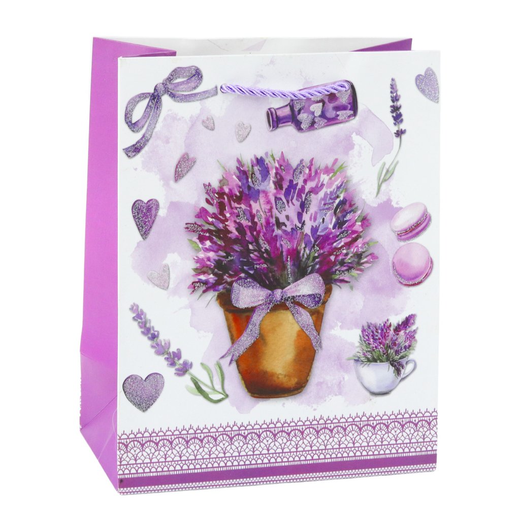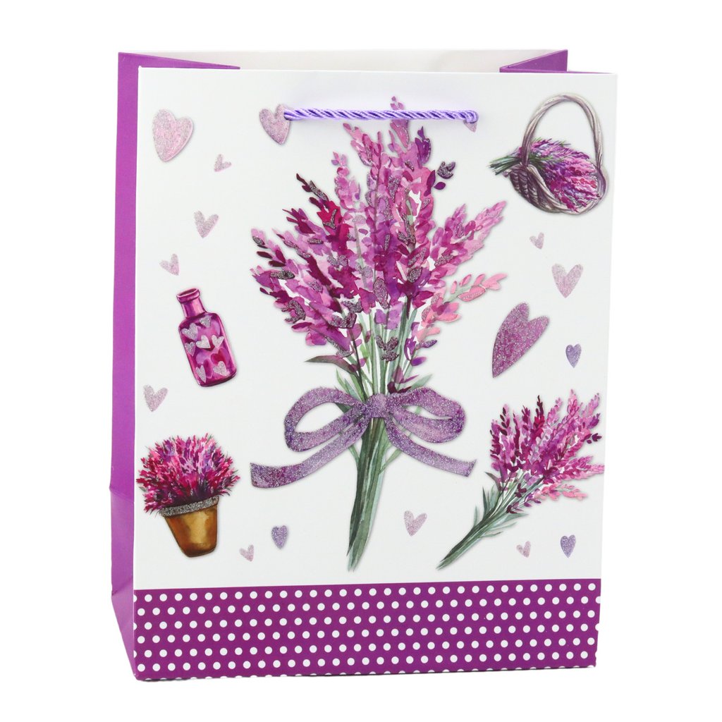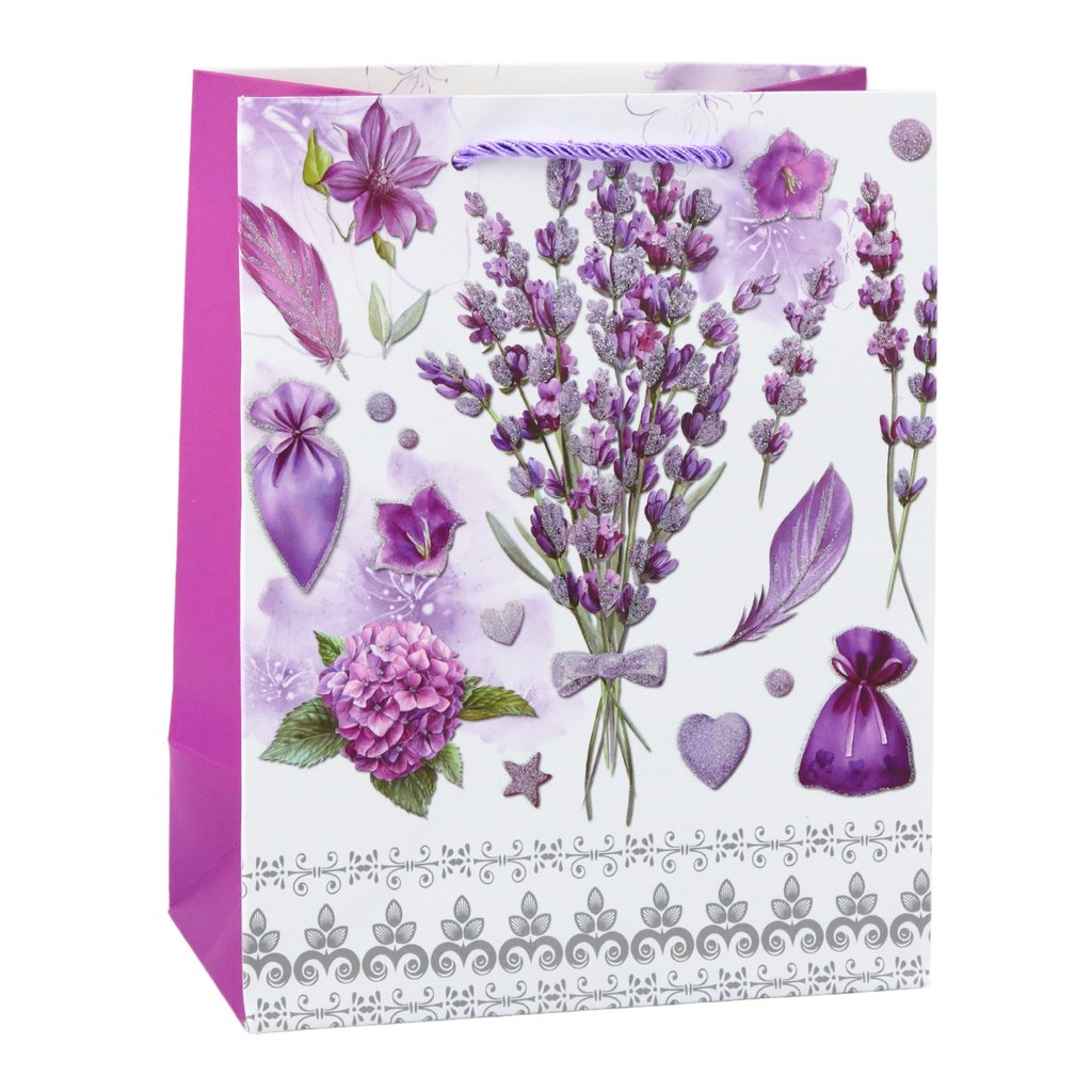 Papírová dárková taška Levandule, třpytivé prvky 23 x 18 x 10,5 cm