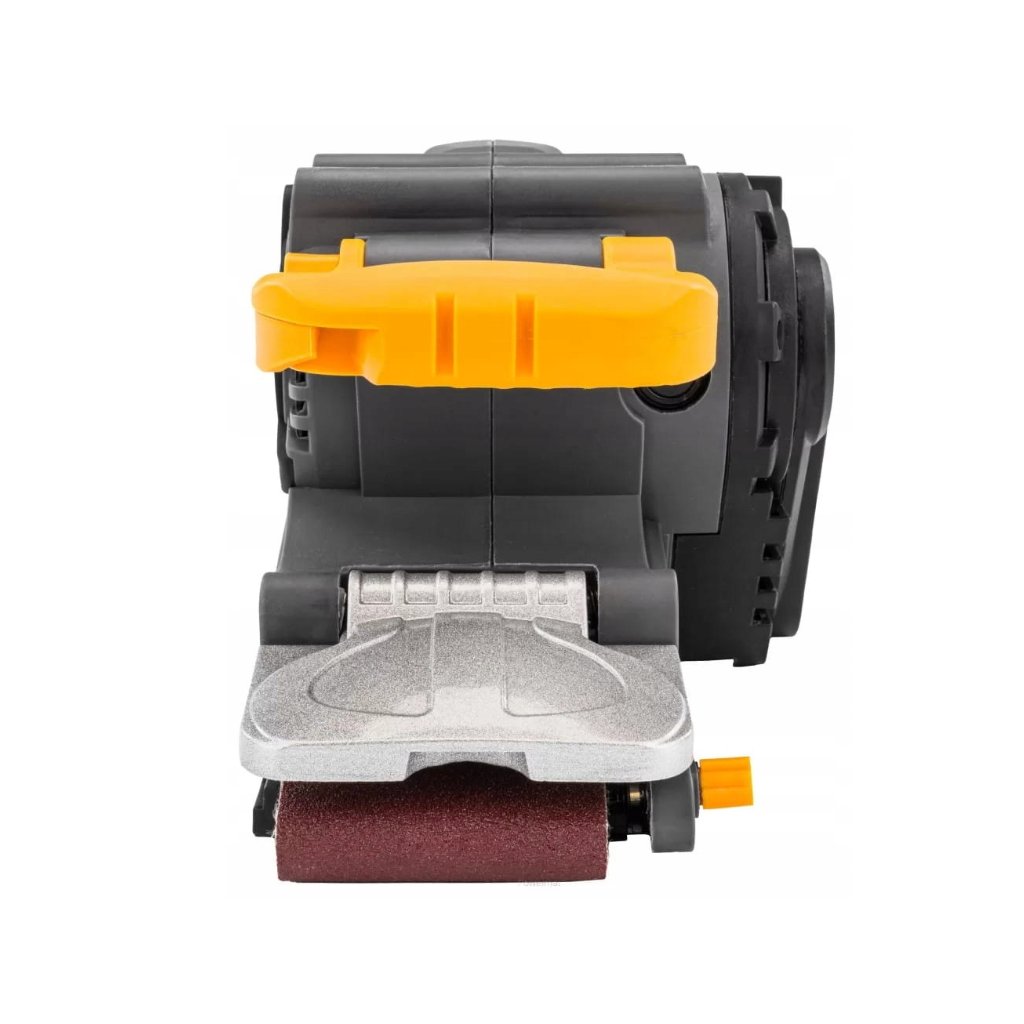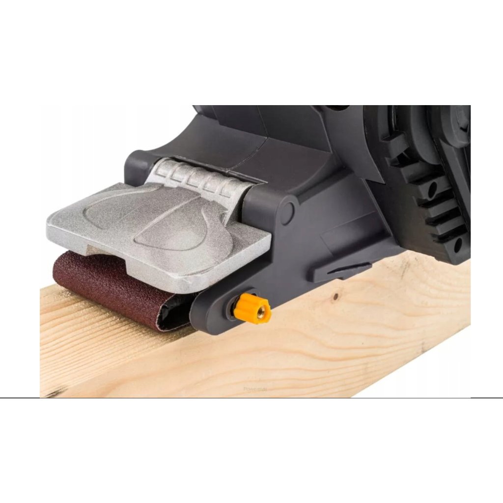 Velkou výhodou je regulace rychlosti pásu v rozsahu 120–380 m/min – snadno si nastavíte jemnější broušení nebo rychlejší úběr materiálu. Brusku lze používat v ruce, nebo ji upevnit k pracovnímu stolu a pracovat pohodlněji jako se stacionárním nástrojem. 🔧