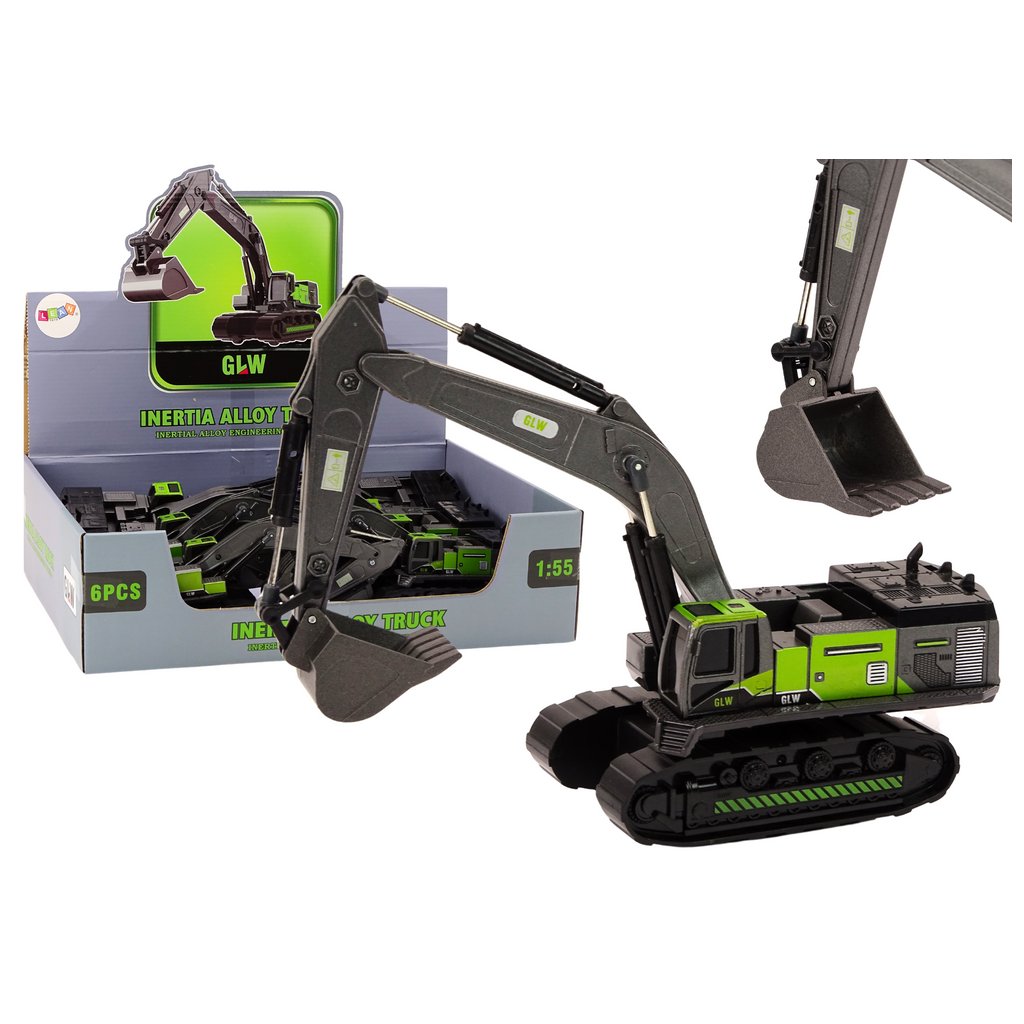 - Představujeme vám pásový kovový bagr 1:55 v černo-zeleném provedení, který je ideálním dárkem pro všechny malé milovníky stavebních strojů