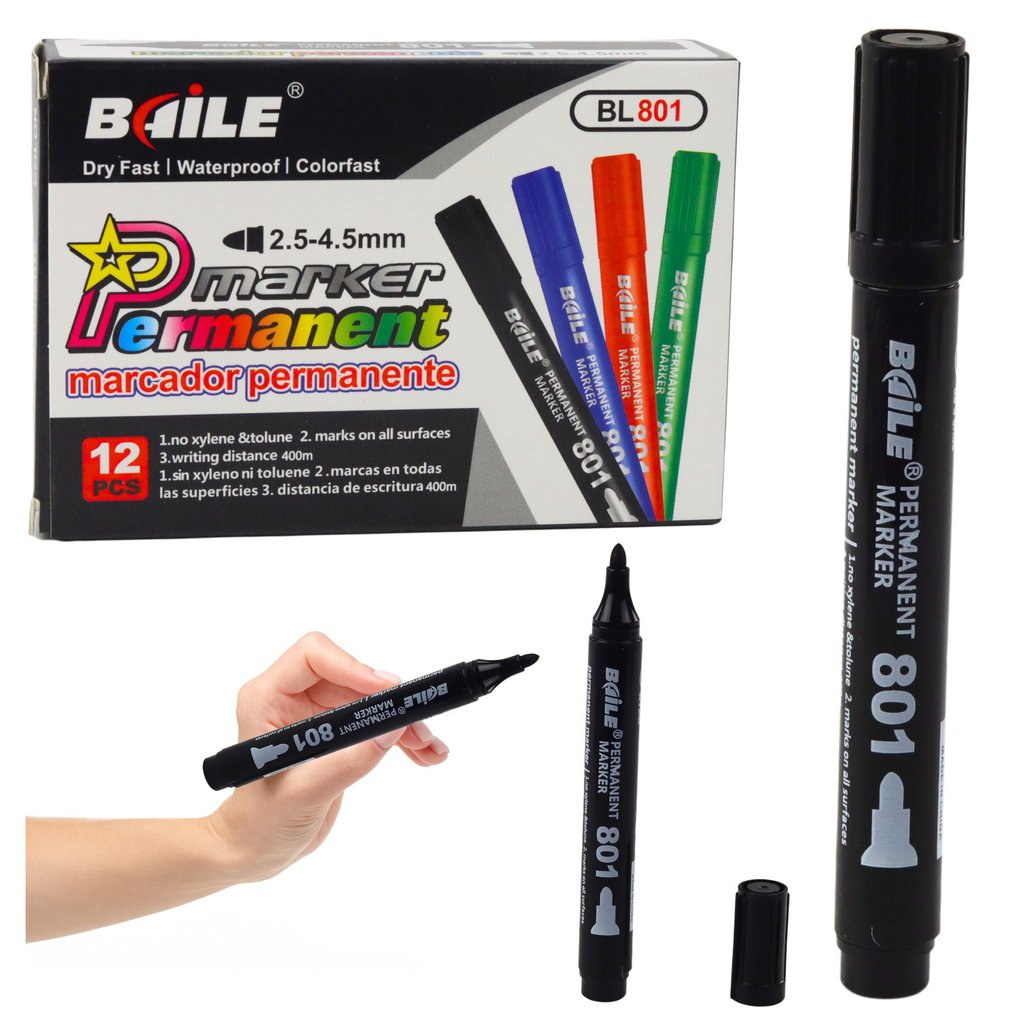 - Permanentní Voděodolný Marker Černý je spolehlivý nástroj pro psaní, kreslení a značení na různých površích