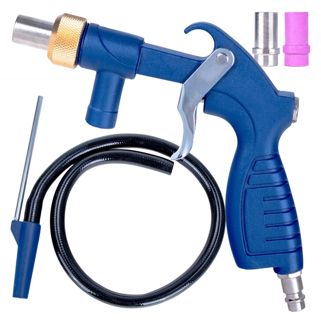 Sada obsahuje dvě náhradní trysky: kovovou a keramickou, hadici pro nasávání písku a trubici s odvětráním, která se zasune do nádrže s pískem