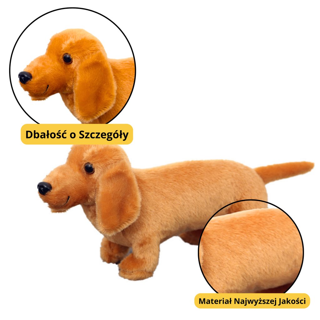 Plusový Plyšový Pes Jezevčík je mimořádně půvabná hračka, která okamžitě upoutá pozornost dětí svým realistickým vzhledem, pečlivě propracovanými detaily a měkkou formou Hračka je vyrobena z vysoce kvalitního, na dotek příjemného plushe v teplém hnědém odstínu, což ještě více podtrhuje její přirozený charakter