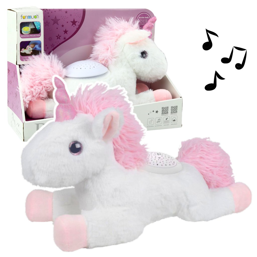 Plyšový Jednorožec Uspávací Mazlíček Projektor Zvuk Bílý