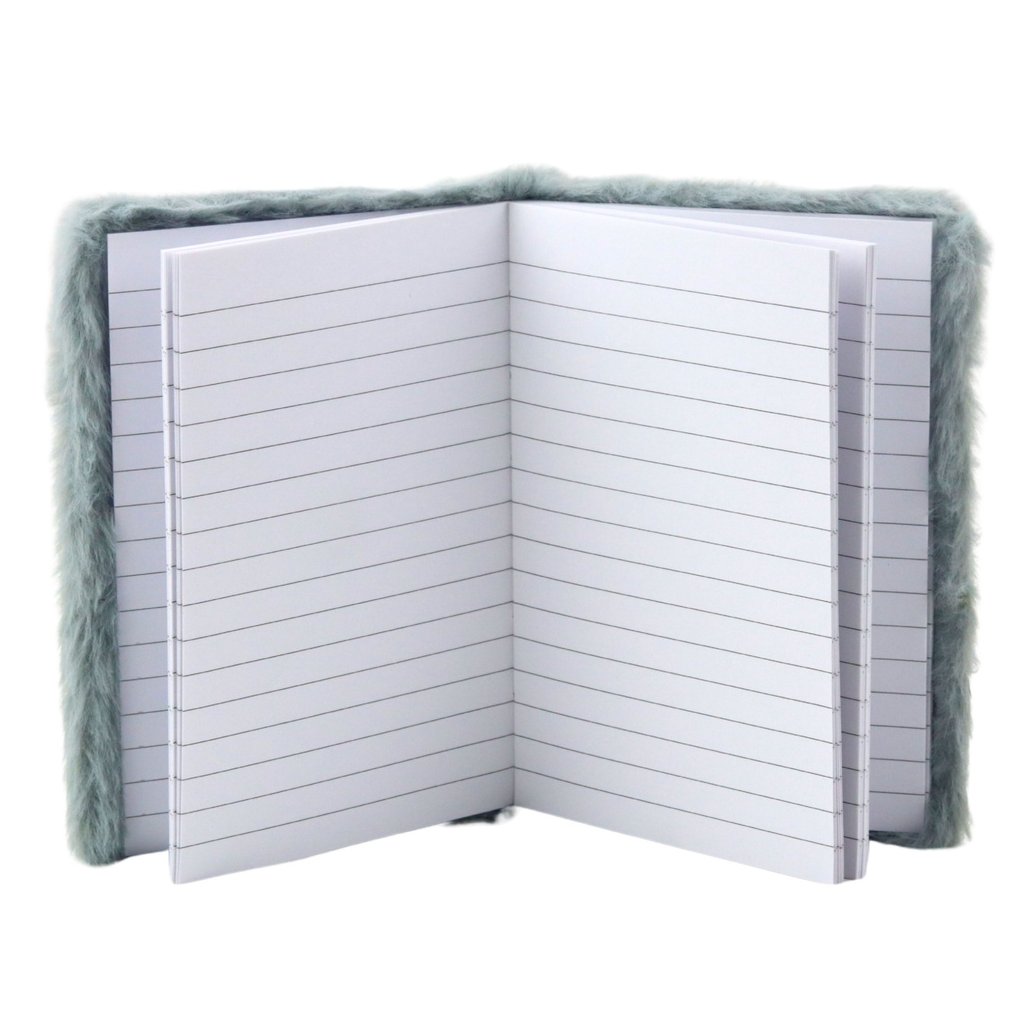 - Má měkký obal pokrytý příjemným plyšem v jemném odstínu šedé, který upoutá pozornost a dodává celému zápisníku jedinečný charakter