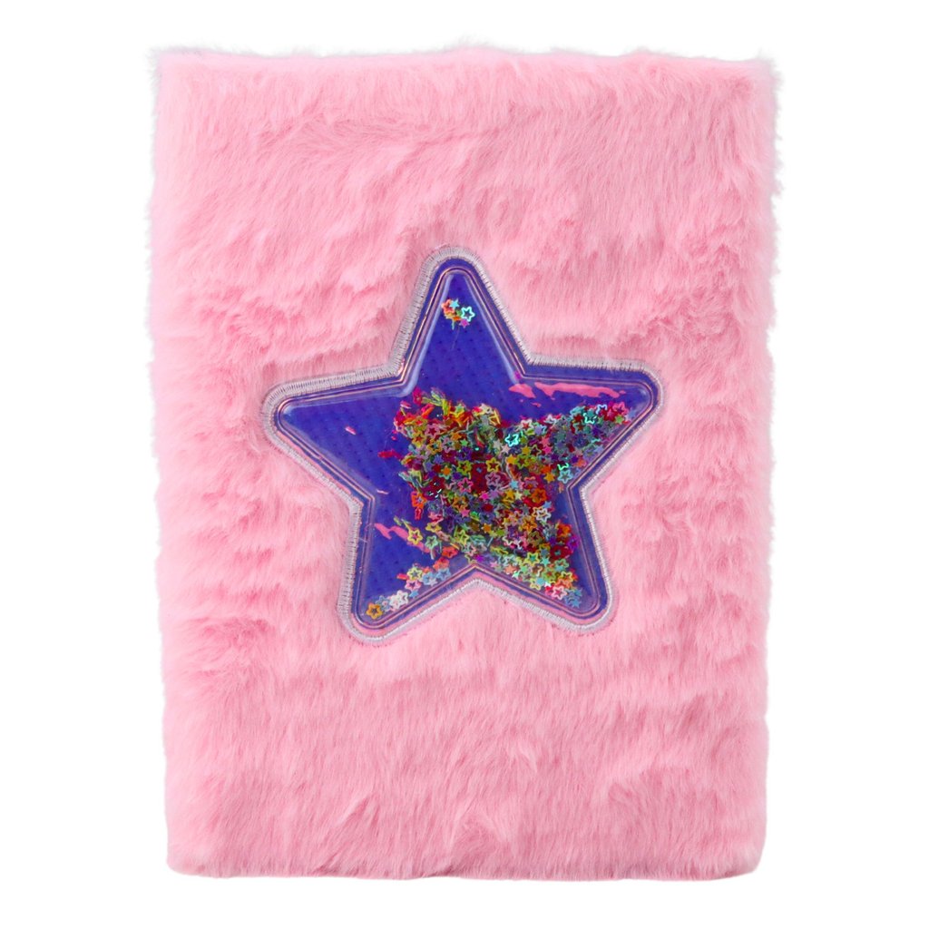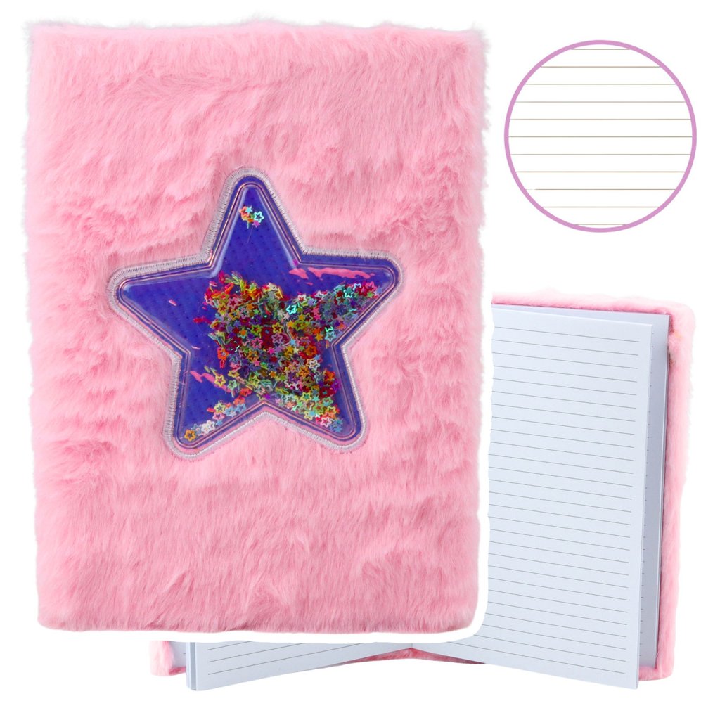 Plyšový Sešit Zápisník Linkovaný Hvězda s Konfetami Růžový A5 80 Listů